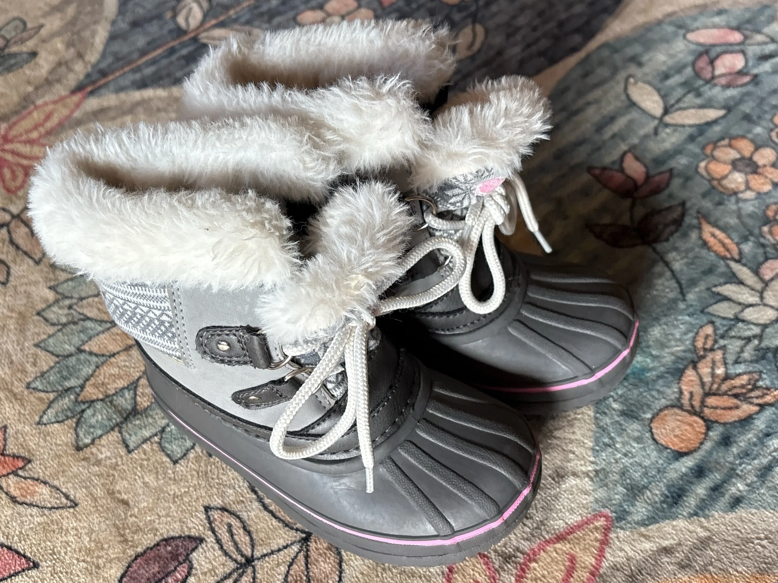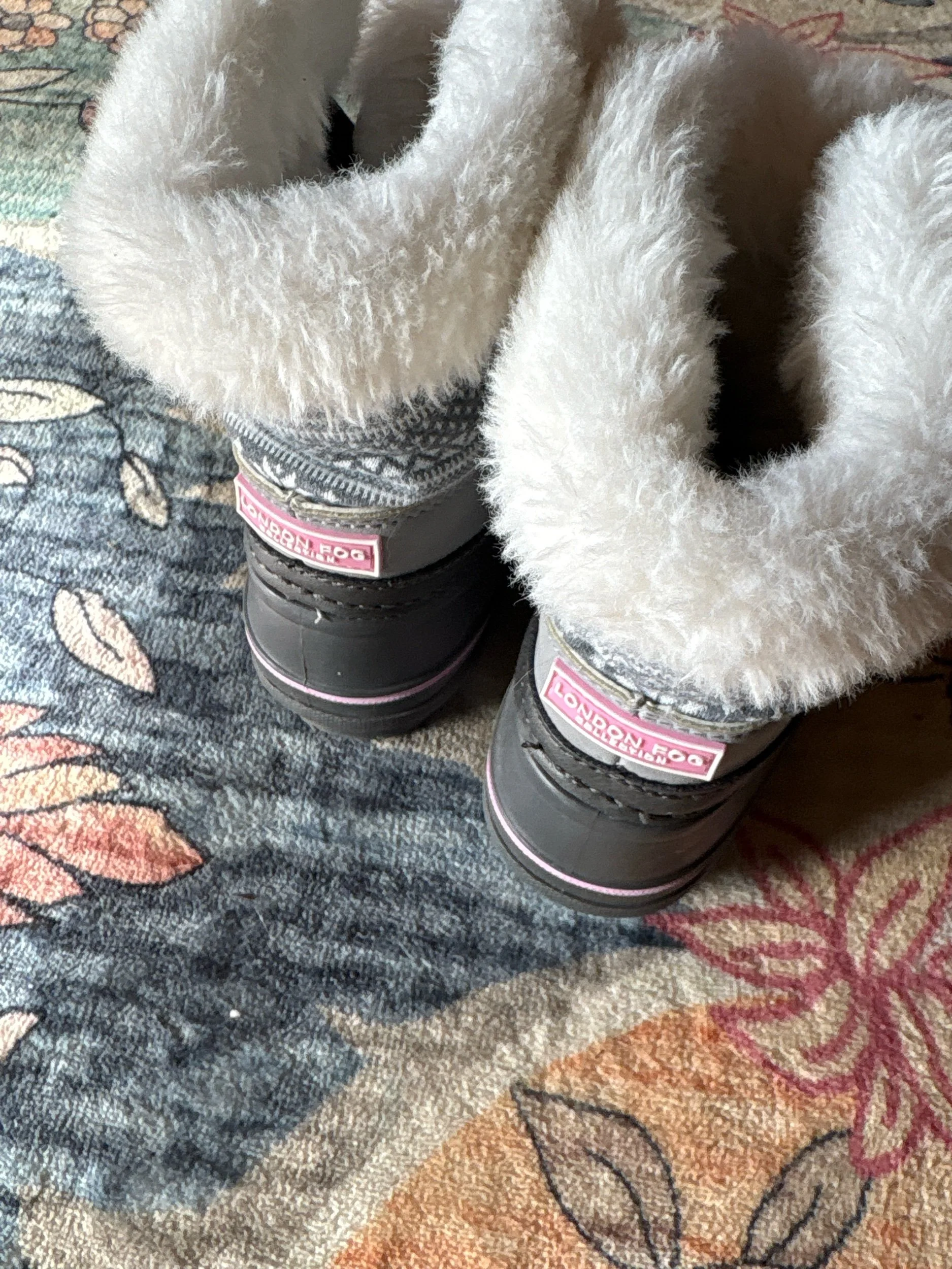 Online Store › London Fog Toddler Girls Winter Snow Boots Size 9 Gray Pink Faux Fur Waterproof Image 1 of 3 Image 2 of 3 Image 3 of 3 London Fog Toddler Girls Winter Snow Boots Size 9 Gray Pink Faux Fur Waterproof $12.00 Adorable kids boots! Add To Cart Added! Adorable kids boots!