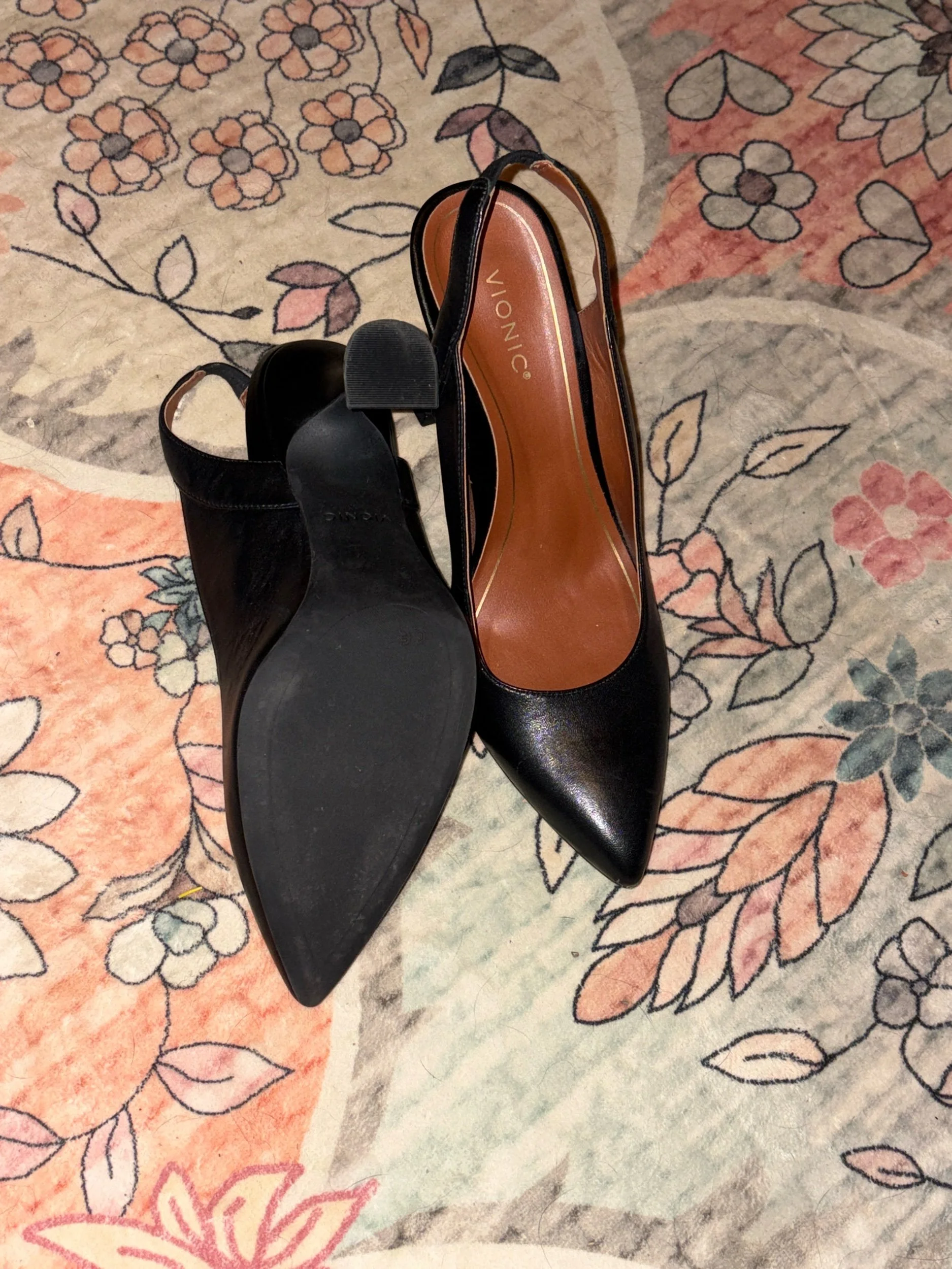 Online Store › Vionic Adalena Women's Slingback Heeled Dress Shoe In Black Size 9.5 Image 1 of 3 Image 2 of 3 Image 3 of 3 Vionic Adalena Women's Slingback Heeled Dress Shoe In Black Size 9.5 $25.00 Beautiful condition! If you haven’t tried Vionics, you should! MSRP is $140, so these are a bargain. Add To Cart Added! Beautiful condition! If you haven’t tried Vionics, you should! MSRP is $140, so these are a bargain.