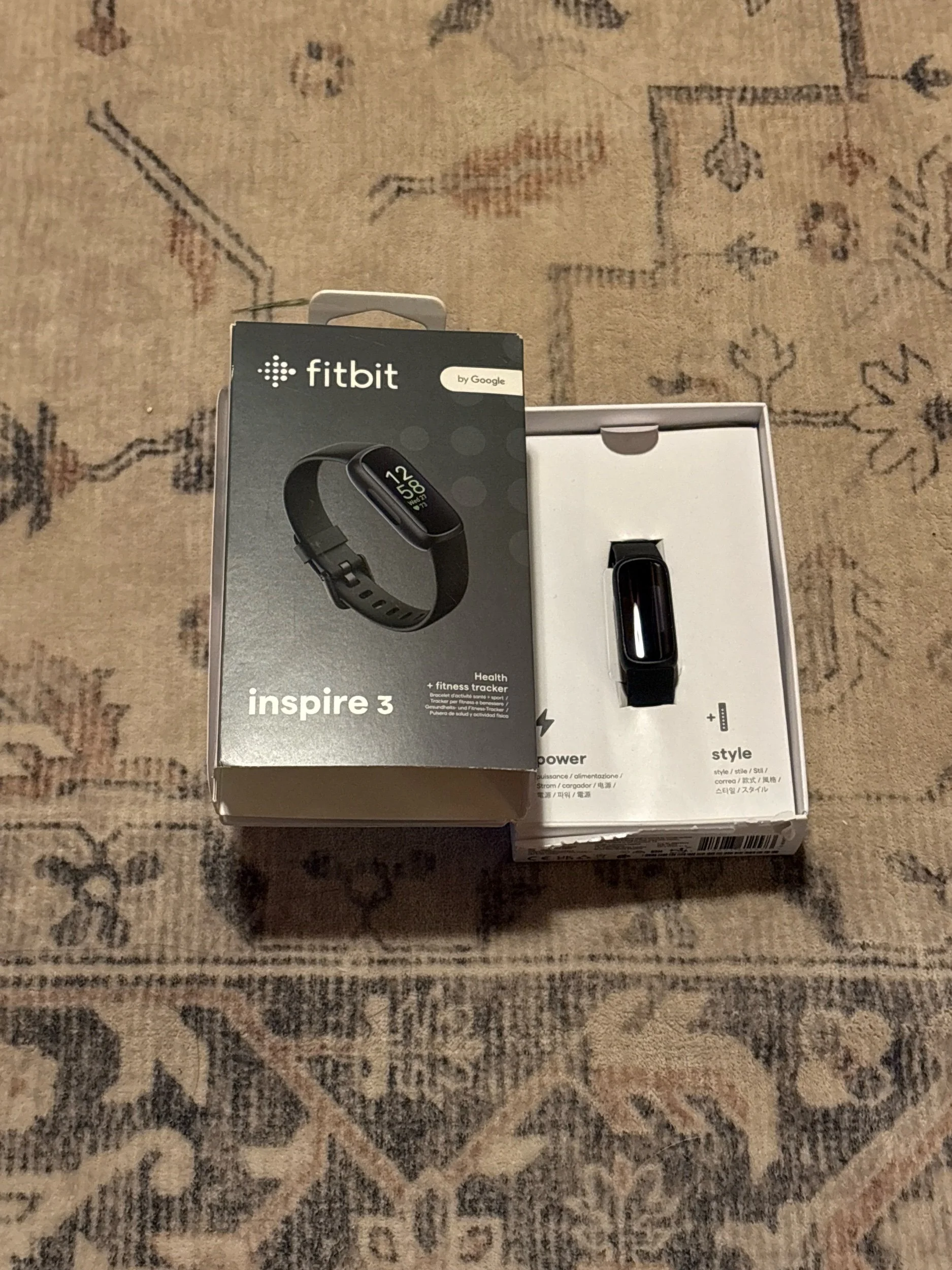 Online Store › Fitbit Inspire 3 fitness tracker Image 1 of 1 Fitbit Inspire 3 fitness tracker $50.00 All parts are included in the box and appear to have taken out of packaging. Add To Cart Added! All parts are included in the box and appear to have taken out of packaging.
