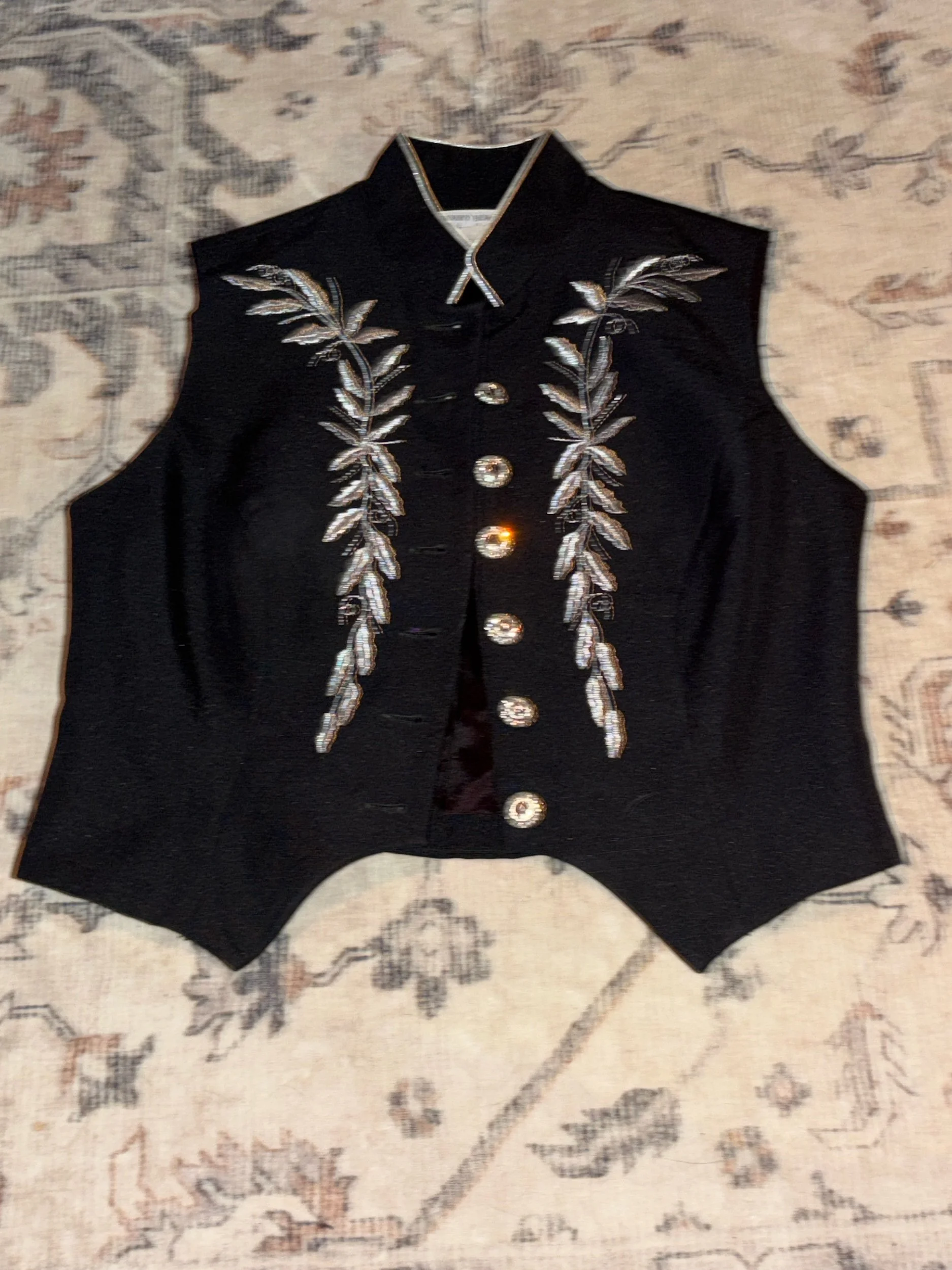 Online Store › Vintage riding show competition vest with rhinestone buttons Image 1 of 3 Image 2 of 3 Image 3 of 3 Vintage riding show competition vest with rhinestone buttons $15.00 Size XS - great condition! Add To Cart Added! Size XS - great condition!