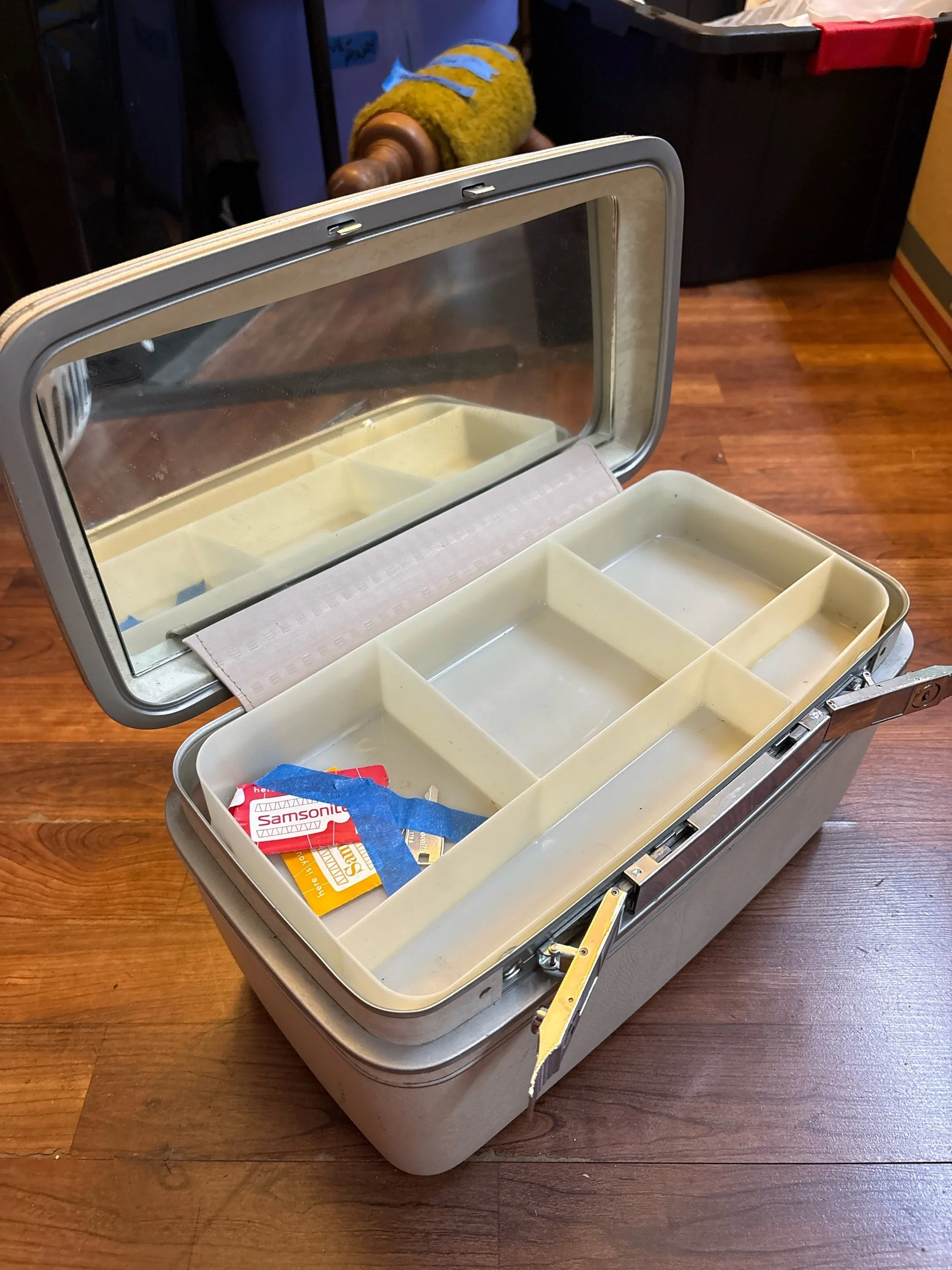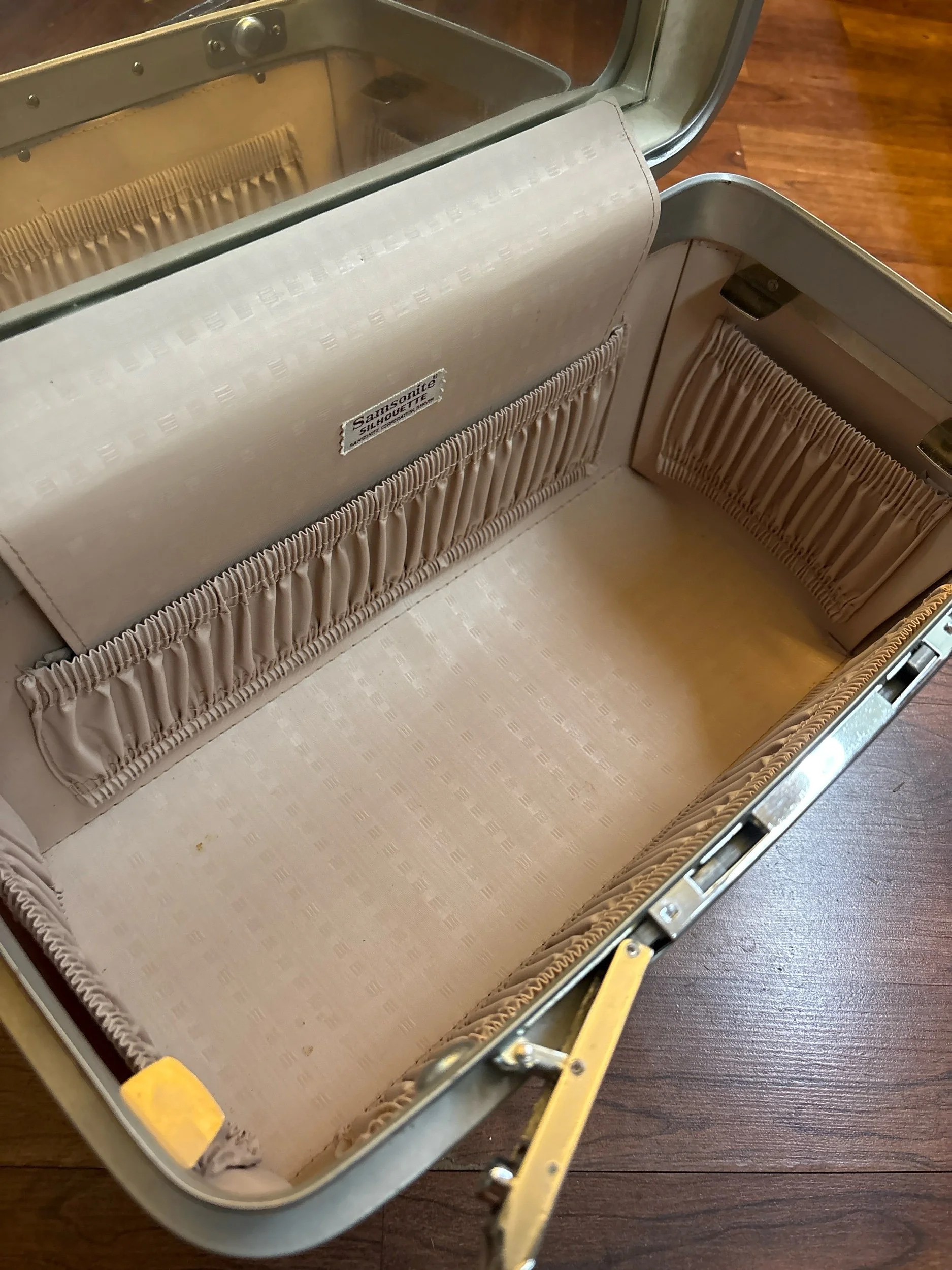 Online Store › vintage Samsonite Silhouette Train Case in Excellent Condition Image 1 of 5 Image 2 of 5 Image 3 of 5 Image 4 of 5 Image 5 of 5 vintage Samsonite Silhouette Train Case in Excellent Condition $50.00 sold out It is really crazy to find something so old in such good shape. We even have the key taped inside! Sold Out Added! It is really crazy to find something so old in such good shape. We even have the key taped inside!