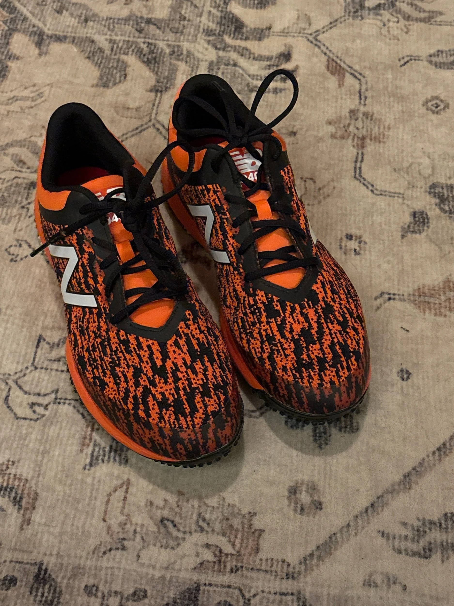 Online Store › New Balance Men's 4040v5 Turf baseball shoes in black and orange size 11 Image 1 of 2 Image 2 of 2 New Balance Men's 4040v5 Turf baseball shoes in black and orange size 11 $20.00 Excellent condition! Add To Cart Added! Excellent condition!