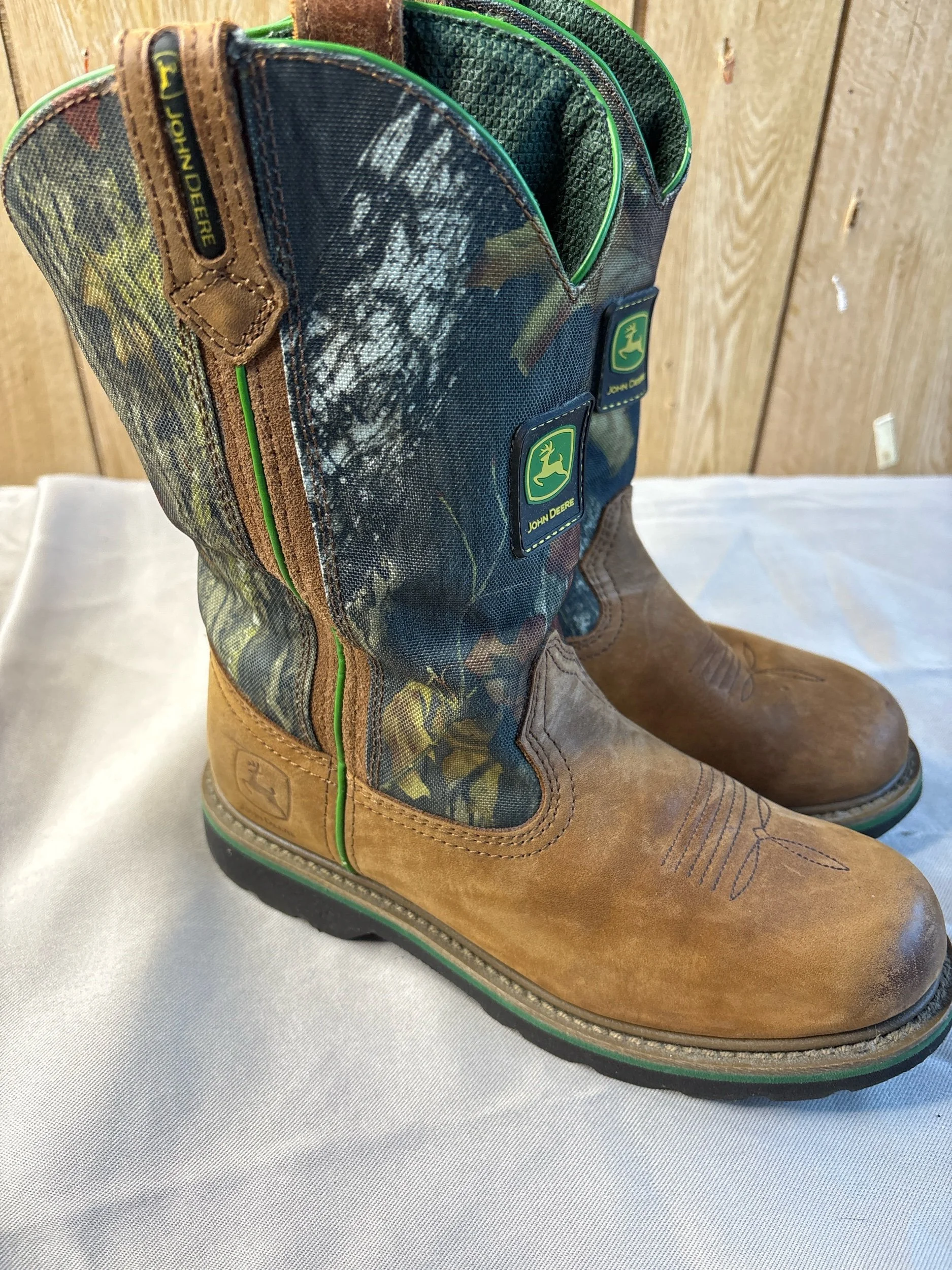 Online Store › John Deere men’s/boys boots - size 7.5M US/38 EUR Image 1 of 4 Image 2 of 4 Image 3 of 4 Image 4 of 4 John Deere men’s/boys boots - size 7.5M US/38 EUR $12.00 Some minor scuffing on the toes. Very little wear on the soles. Add To Cart Added! Some minor scuffing on the toes. Very little wear on the soles.