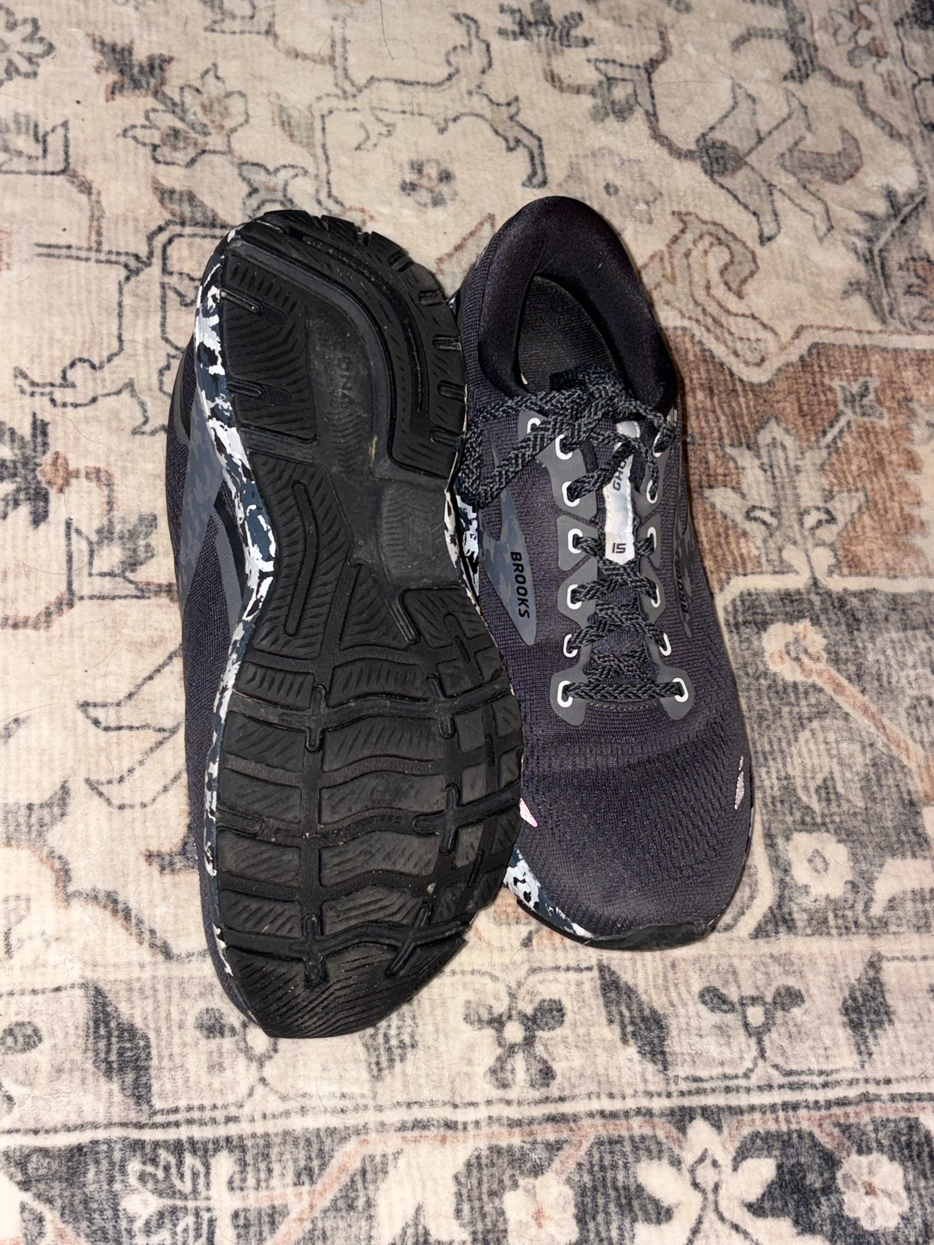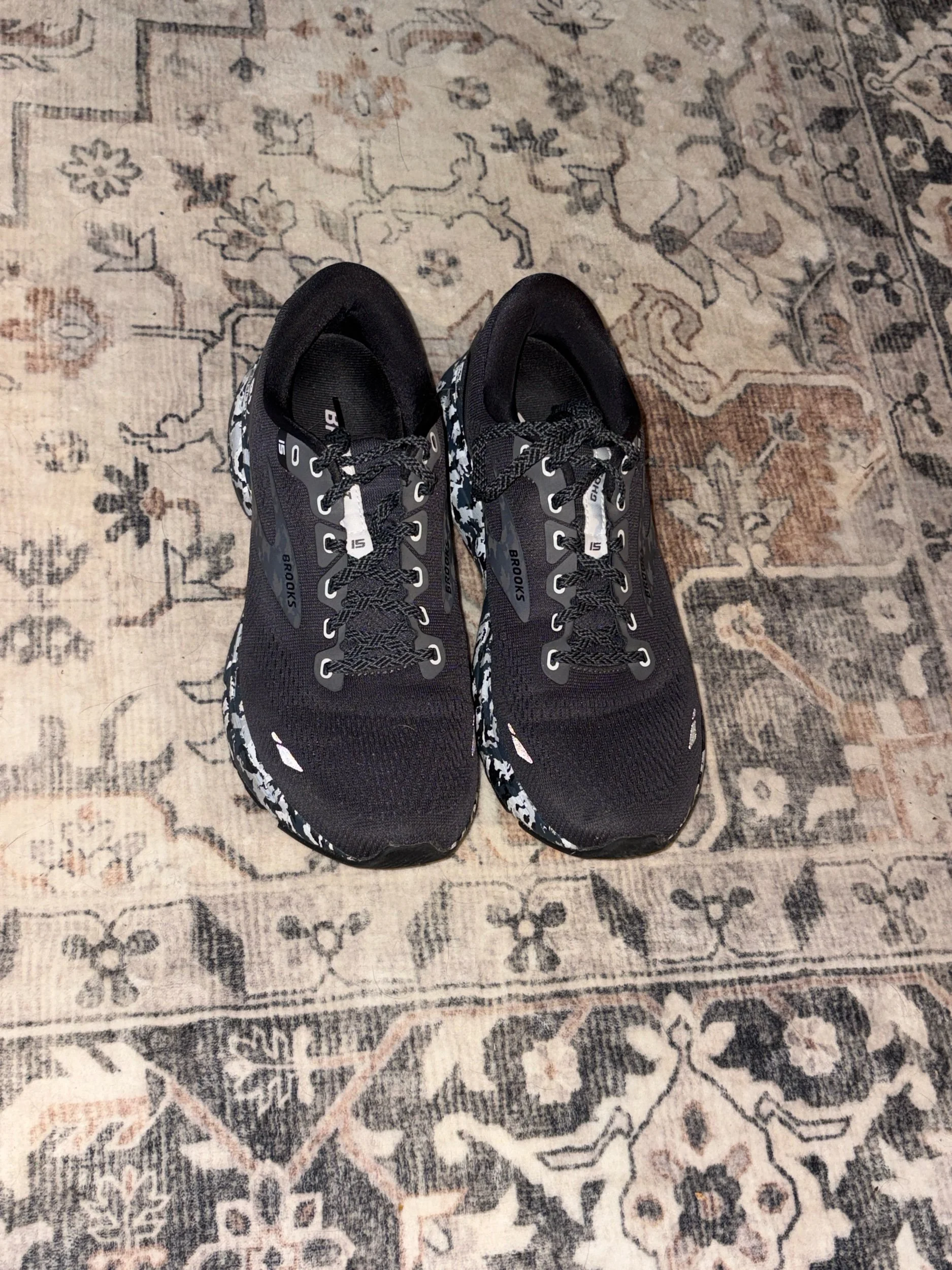 Online Store › Men’s Sz 9 Brooks Ghost 15 running shoes in a black and white colorway Image 1 of 2 Image 2 of 2 Men’s Sz 9 Brooks Ghost 15 running shoes in a black and white colorway $20.00 Really great condition! Lots of life left! Very minor wear. Add To Cart Added! Really great condition! Lots of life left! Very minor wear.