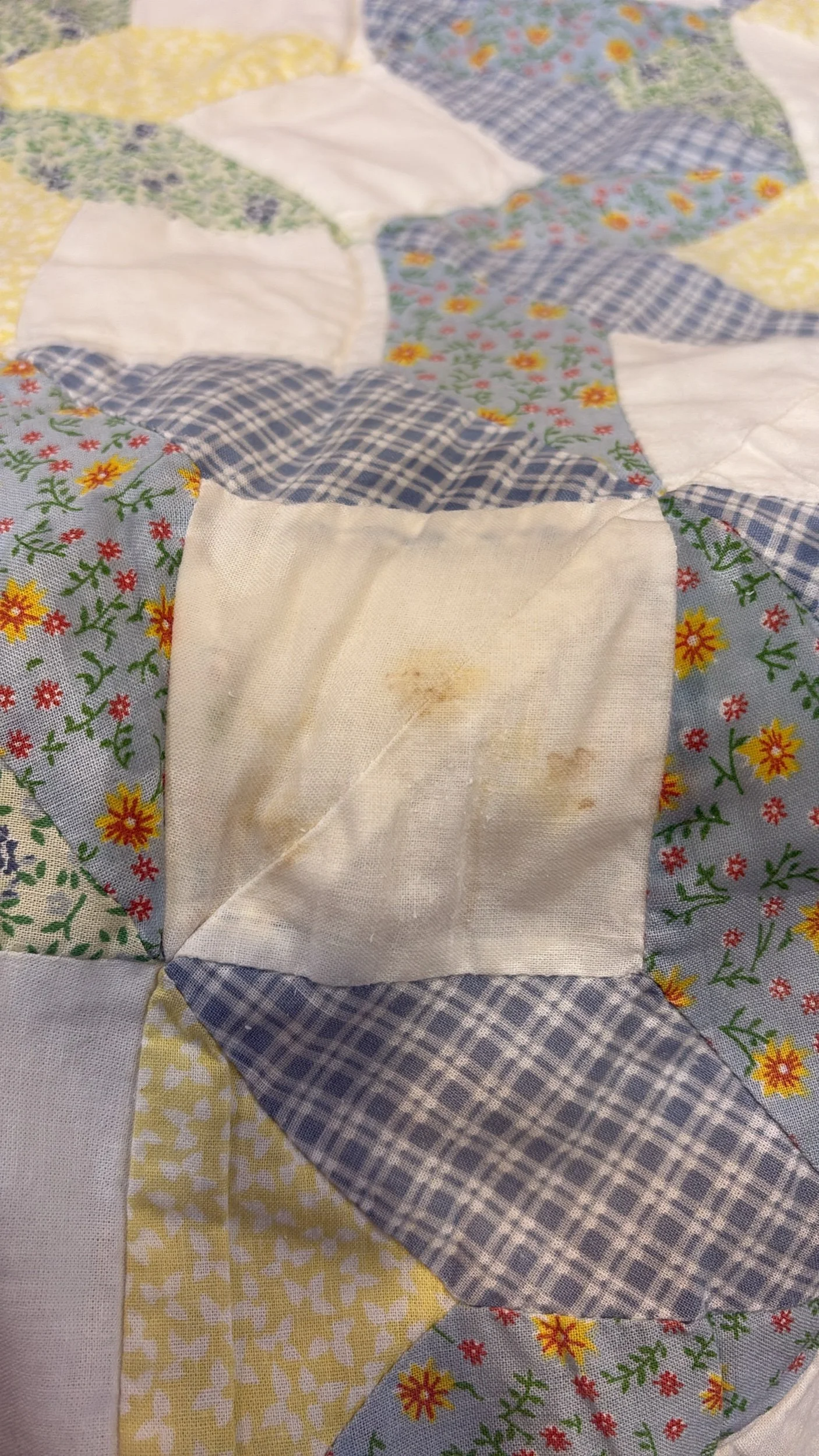Online Store › Imperfect quilt - small hole and possible stain Image 1 of 5 Image 2 of 5 Image 3 of 5 Image 4 of 5 Image 5 of 5 Imperfect quilt - small hole and possible stain $23.00 sold out Sold Out Added!