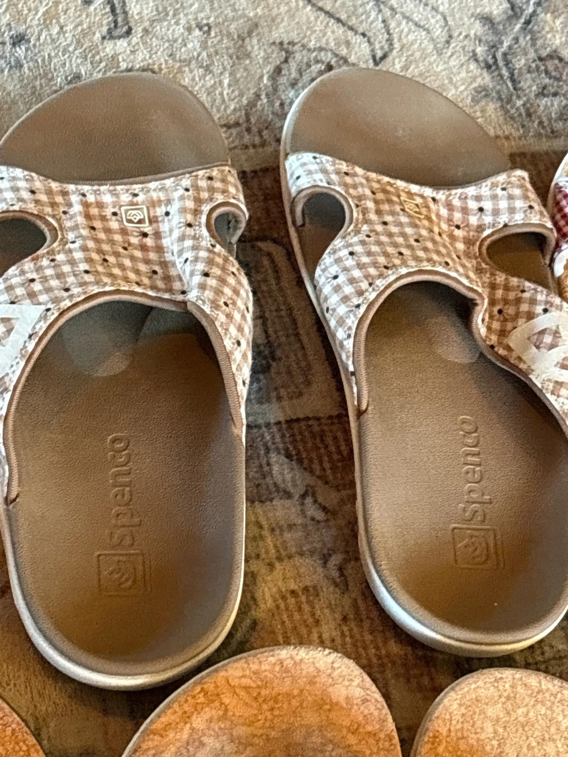 Spenco’s patented Total Support Cushioning System eliminates stress on knees, ankles and feet by absorbing shock from walking.