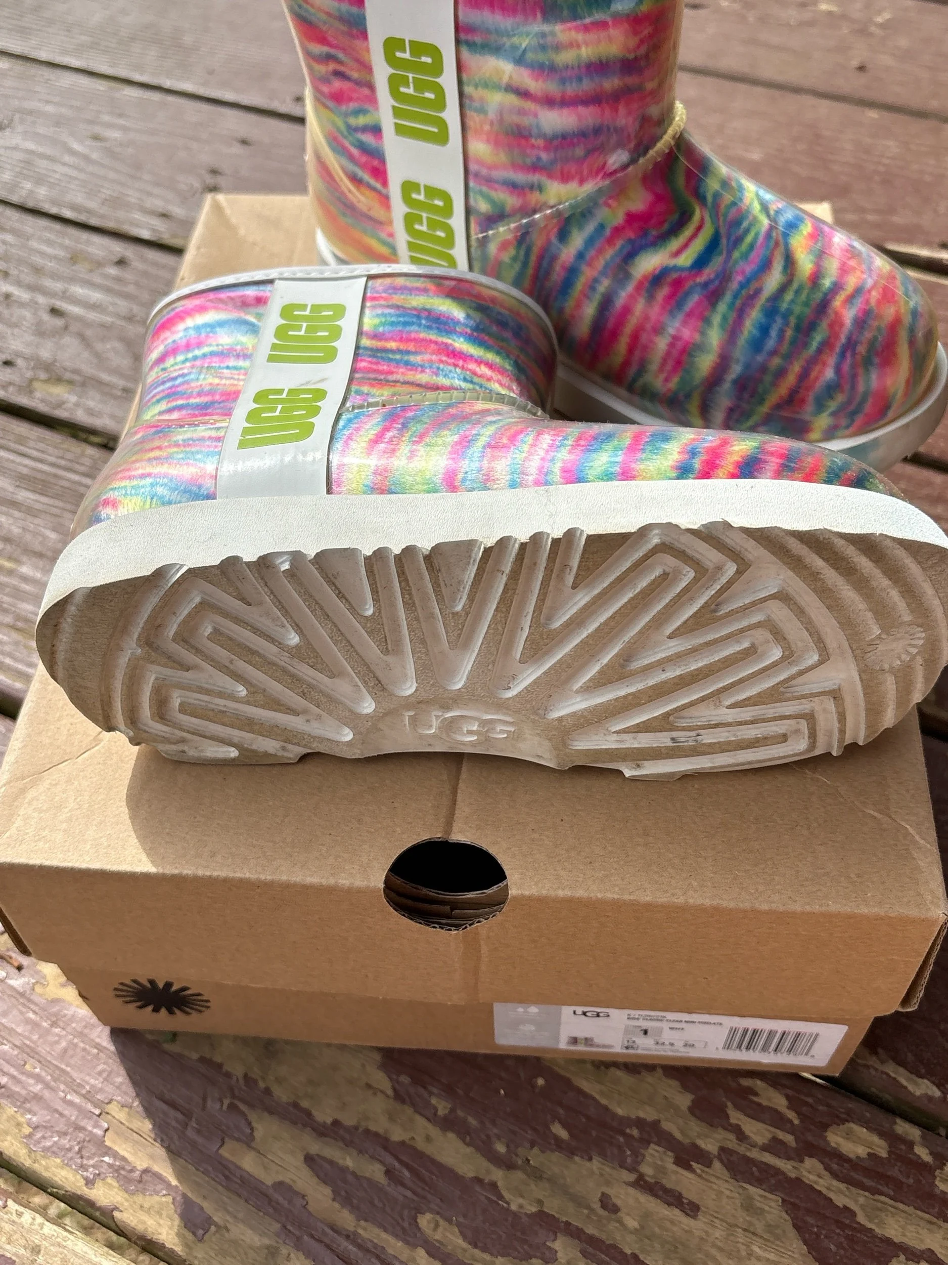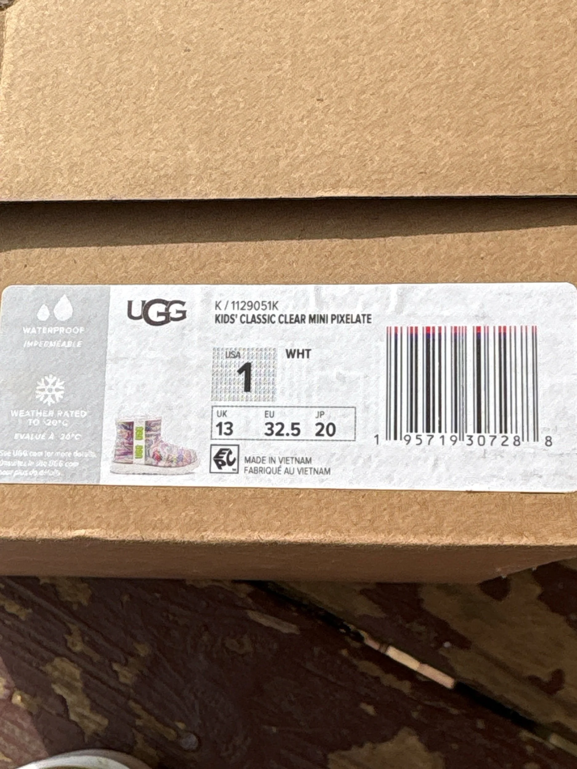 Online Store › UGG Classic Clear Mini Pixelate waterproof booties size 1 Image 1 of 3 Image 2 of 3 Image 3 of 3 UGG Classic Clear Mini Pixelate waterproof booties size 1 $17.00 Worn but excellent condition- super fun. Add To Cart Added! Worn but excellent condition- super fun.