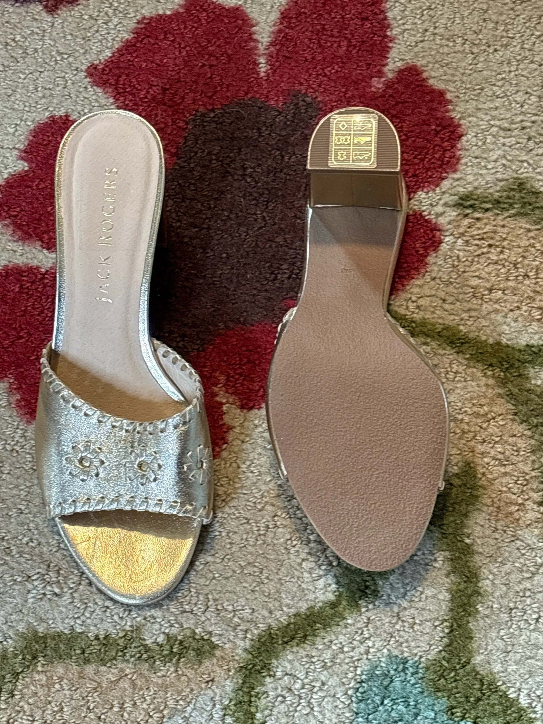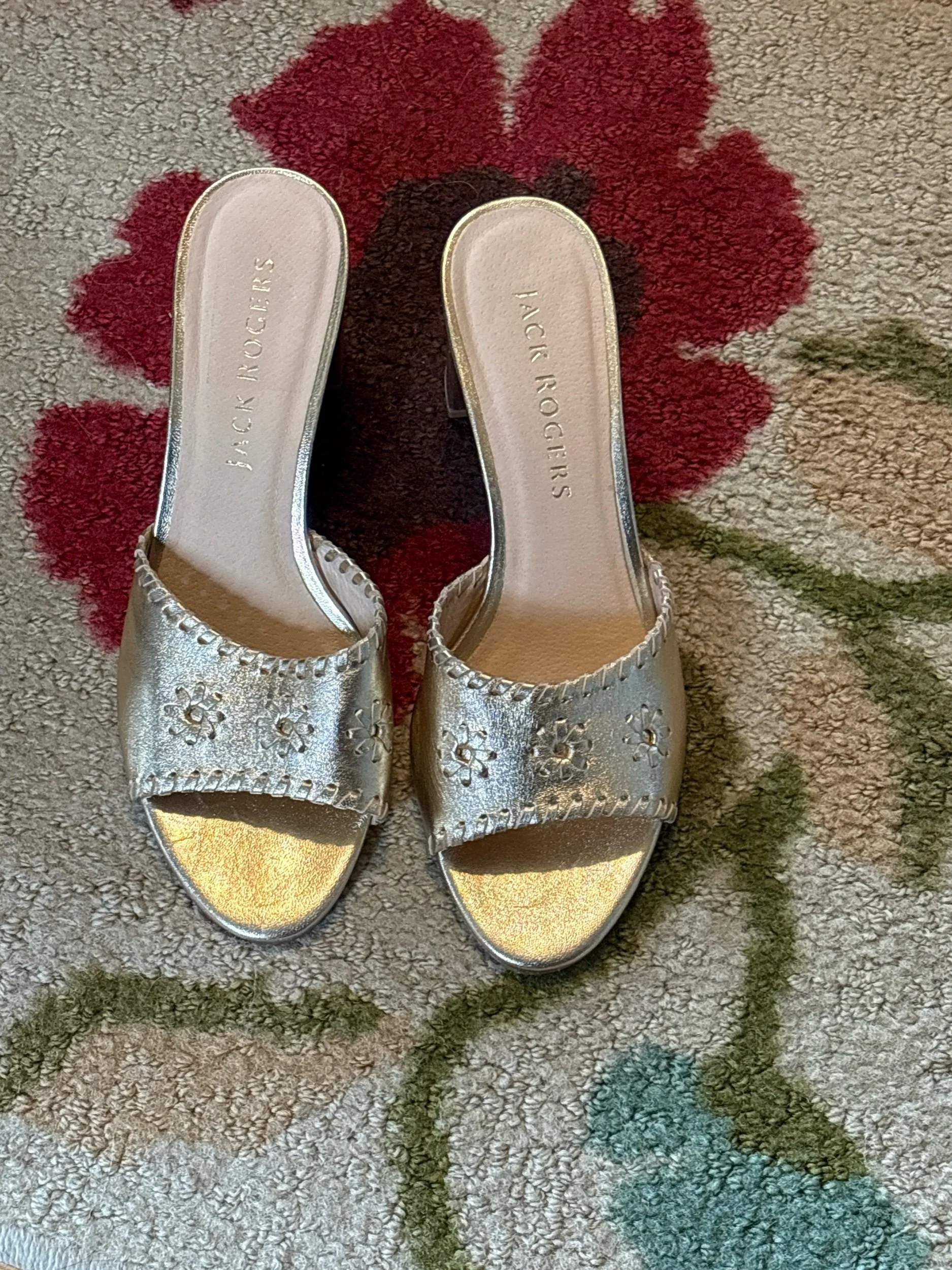 Online Store › Jack Rogers Wells women’s 9M mid heel gold heeled sandals Image 1 of 3 Image 2 of 3 Image 3 of 3 Jack Rogers Wells women’s 9M mid heel gold heeled sandals $40.00 These look brand new! Retail is about $140. Add To Cart Added! These look brand new! Retail is about $140.