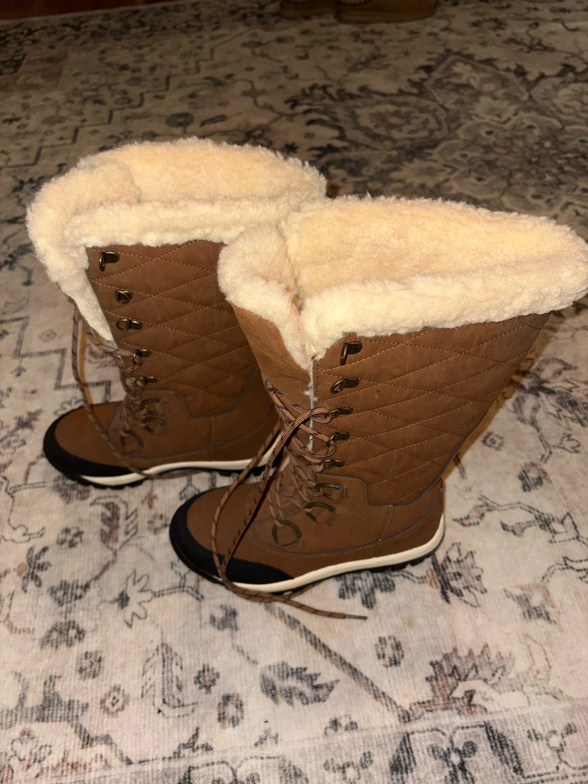 Online Store › Bearpaw Isabella women's waterproof winter boots size 8 NEW Image 1 of 3 Image 2 of 3 Image 3 of 3 Bearpaw Isabella women's waterproof winter boots size 8 NEW $29.00 Bearpaw Isabella women's waterproof winter boots in a brown color with a quilted leather upper and wool blend lining Add To Cart Added! Bearpaw Isabella women's waterproof winter boots in a brown color with a quilted leather upper and wool blend lining
