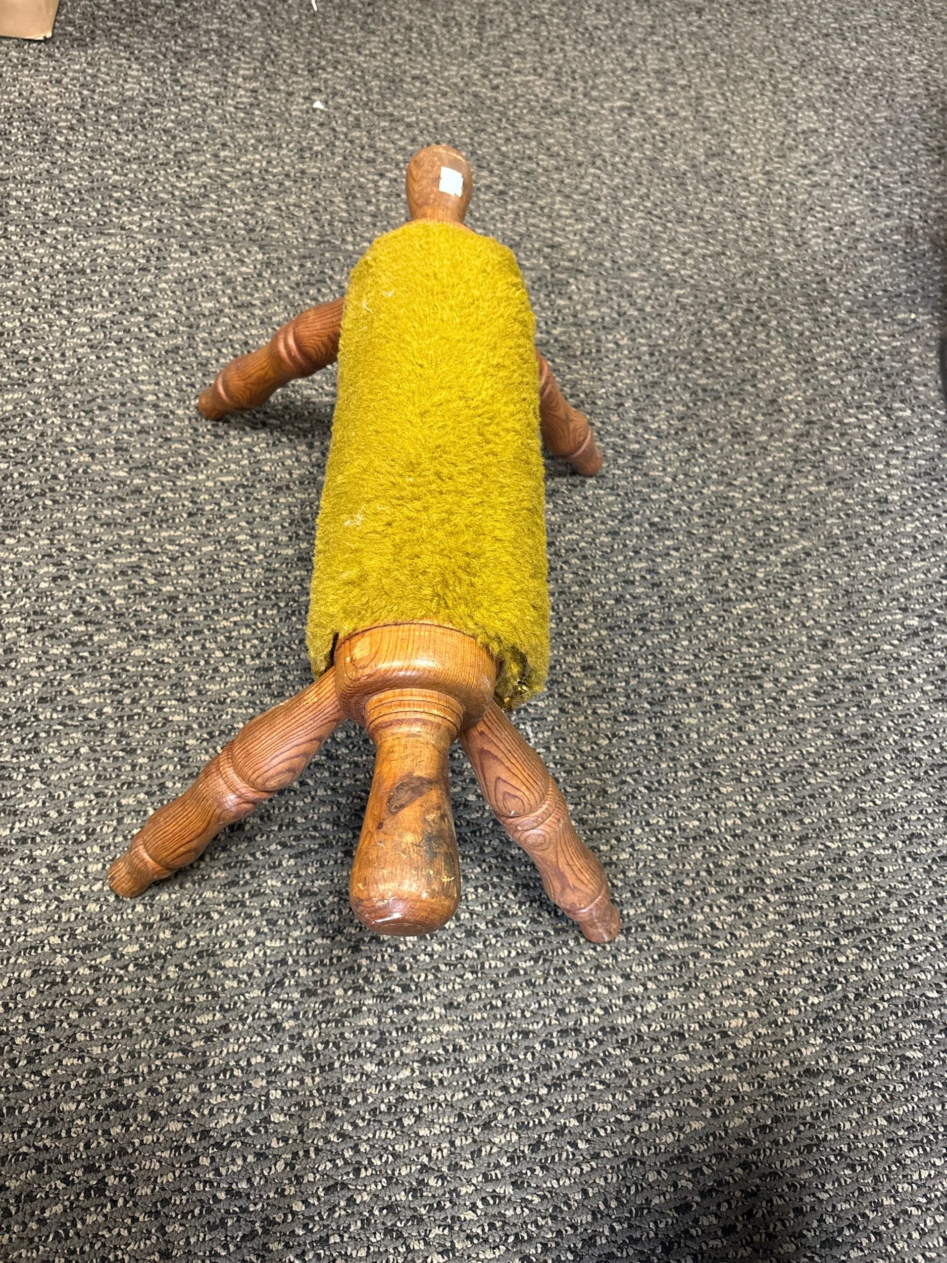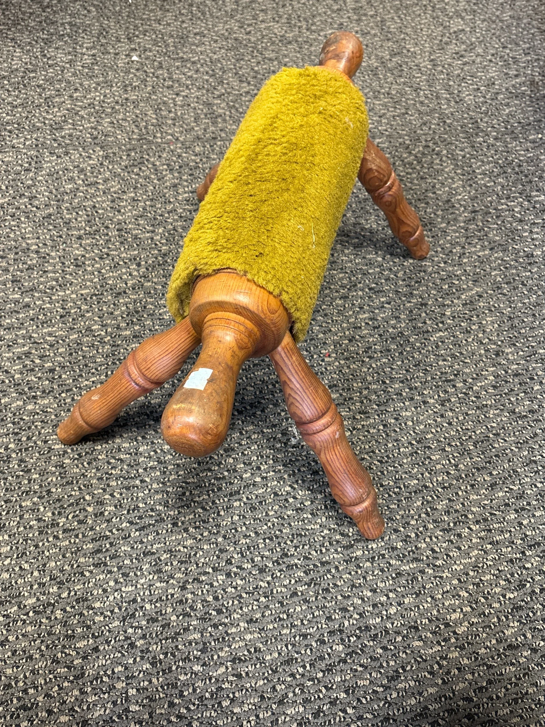 This item is a vintage gout stool, a type of antique furniture designed to elevate a foot to relieve pain from gout.