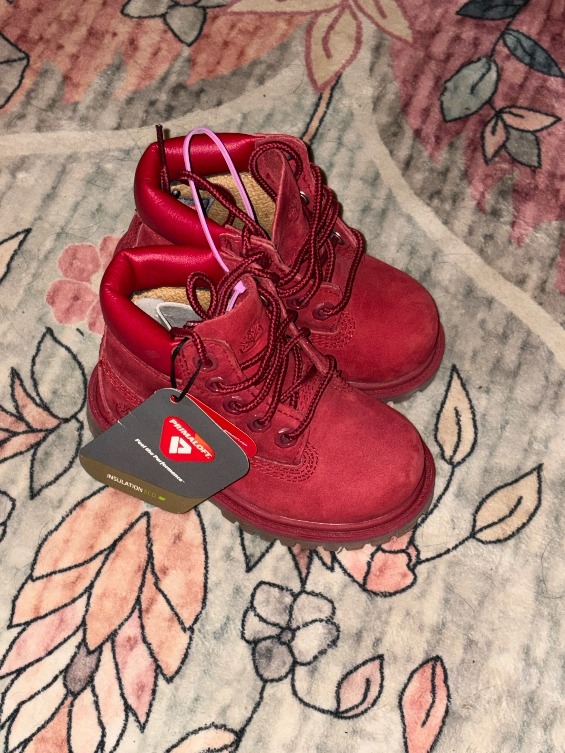 Online Store › Brand new toddler size 5 Timberland red boots Image 1 of 2 Image 2 of 2 Brand new toddler size 5 Timberland red boots $20.00 These are adorable and in perfect condition! Would make a great gift! Good for boys or girls! Add To Cart Added! These are adorable and in perfect condition! Would make a great gift! Good for boys or girls!