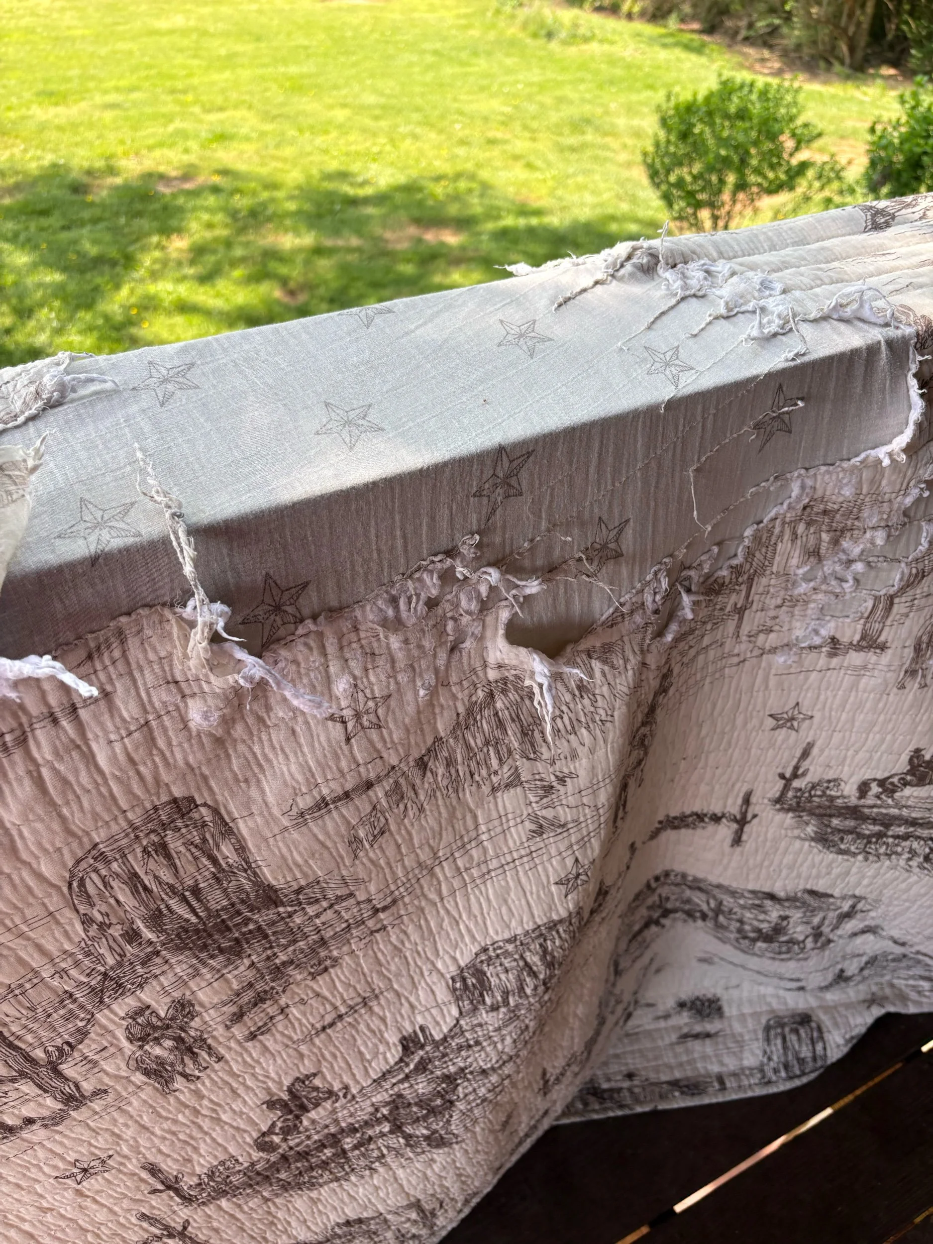 Online Store › Western quilt with significant damage 84 by 90 Image 1 of 4 Image 2 of 4 Image 3 of 4 Image 4 of 4 Western quilt with significant damage 84 by 90 $10.00 sold out Sold Out Added!