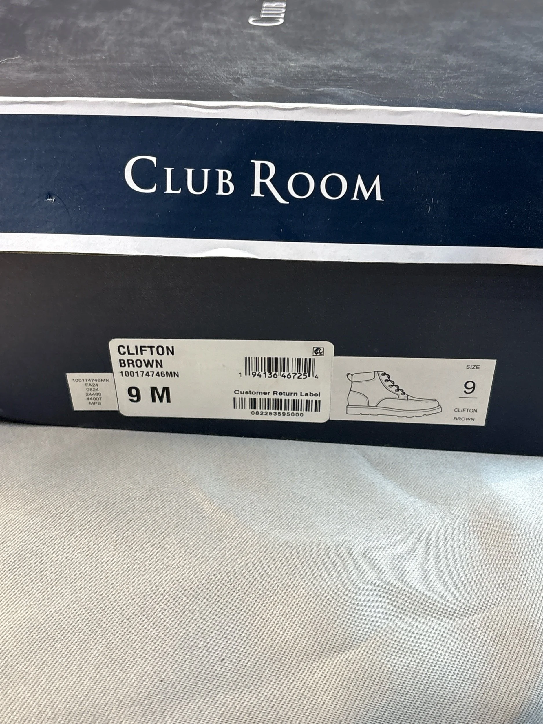 Online Store › Clifton Brown Men’s Size 9 boots Club Room Image 1 of 3 Image 2 of 3 Image 3 of 3 Clifton Brown Men’s Size 9 boots Club Room $40.00 New condition but the box is a bit beat up! Add To Cart Added! New condition but the box is a bit beat up!
