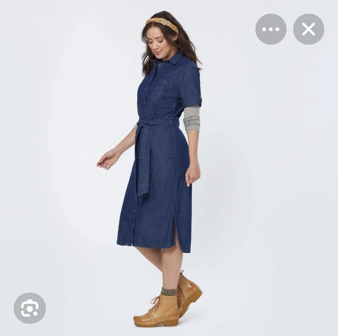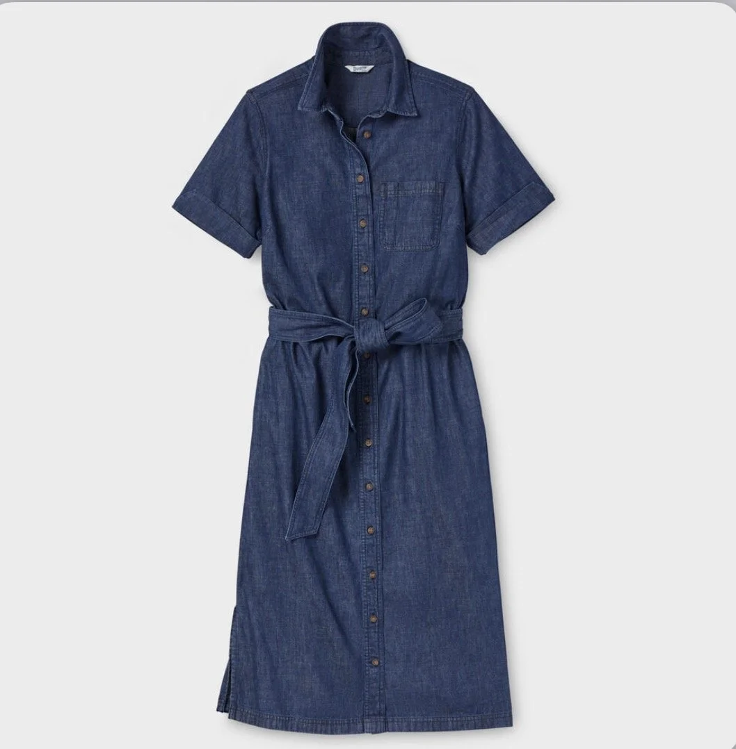 Take on the day without giving your clothes a second thought in our worry-free Denim Midi Dress. Thanks to hidden No-Gape® buttons, pesky gapping and pulling is outta sight, outta mind. Then there’s the undeniably comfy denim, made from lightweight-yet-sturdy cotton that feels gently broken-in from the start. Shape-accentuating bust darts and a waist tie keep it from looking boxy. Toss it on without missing a beat, and bend, stretch and crouch knowing your cantaloupes are safely contained.