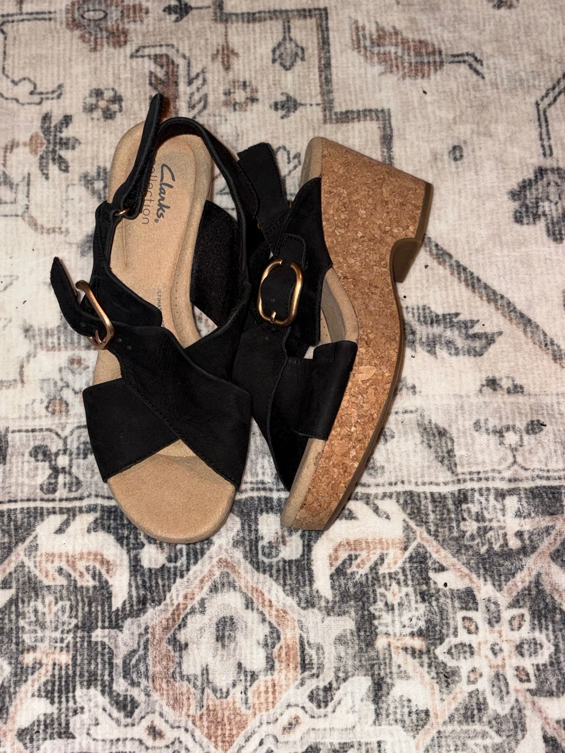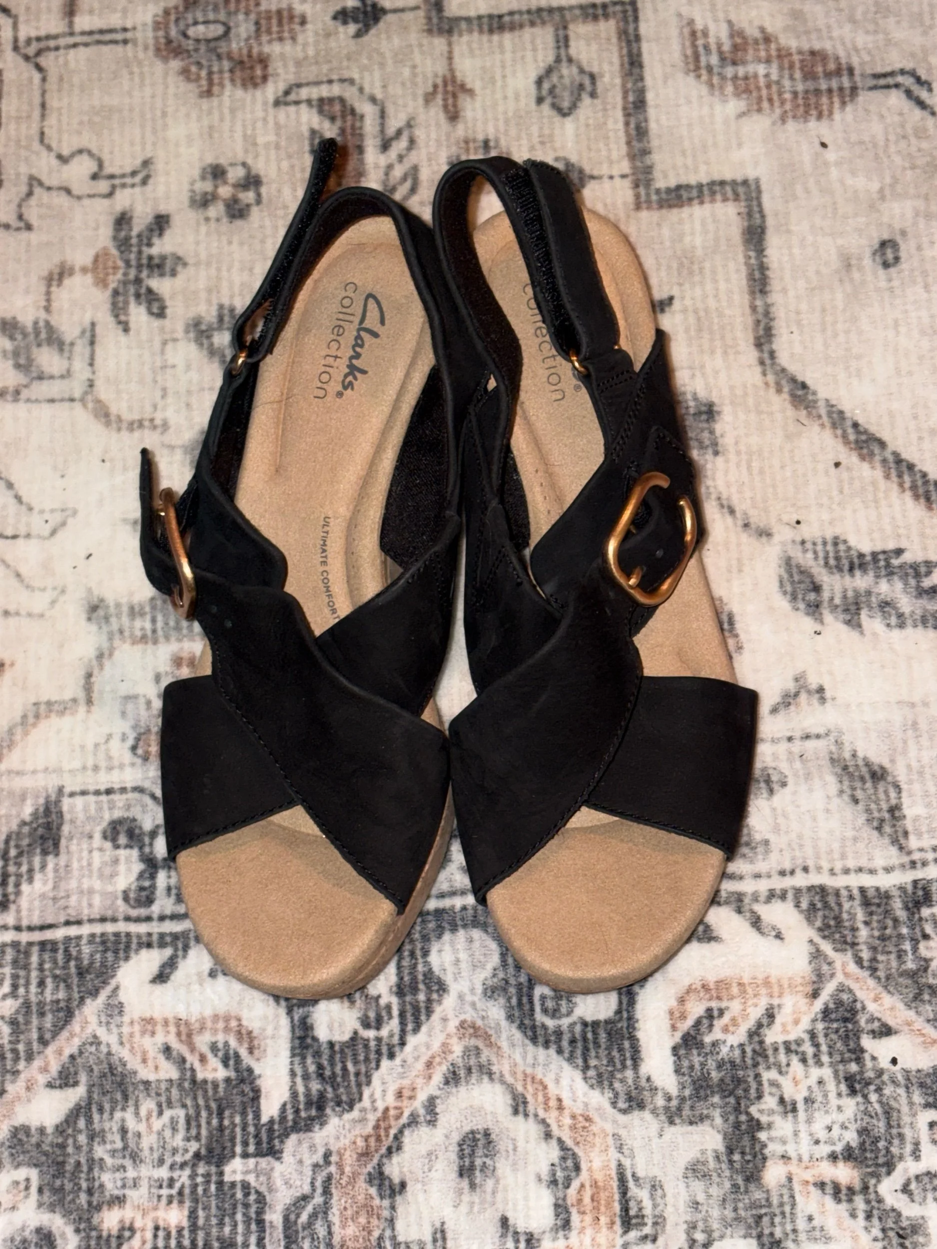 Online Store › Clarks Giselle Dove wedge sandals in black nubuck leather size 9M Image 1 of 3 Image 2 of 3 Image 3 of 3 Clarks Giselle Dove wedge sandals in black nubuck leather size 9M $18.00 Beautiful shoes in great condition. Appear to have only been tried on. Add To Cart Added! Beautiful shoes in great condition. Appear to have only been tried on.