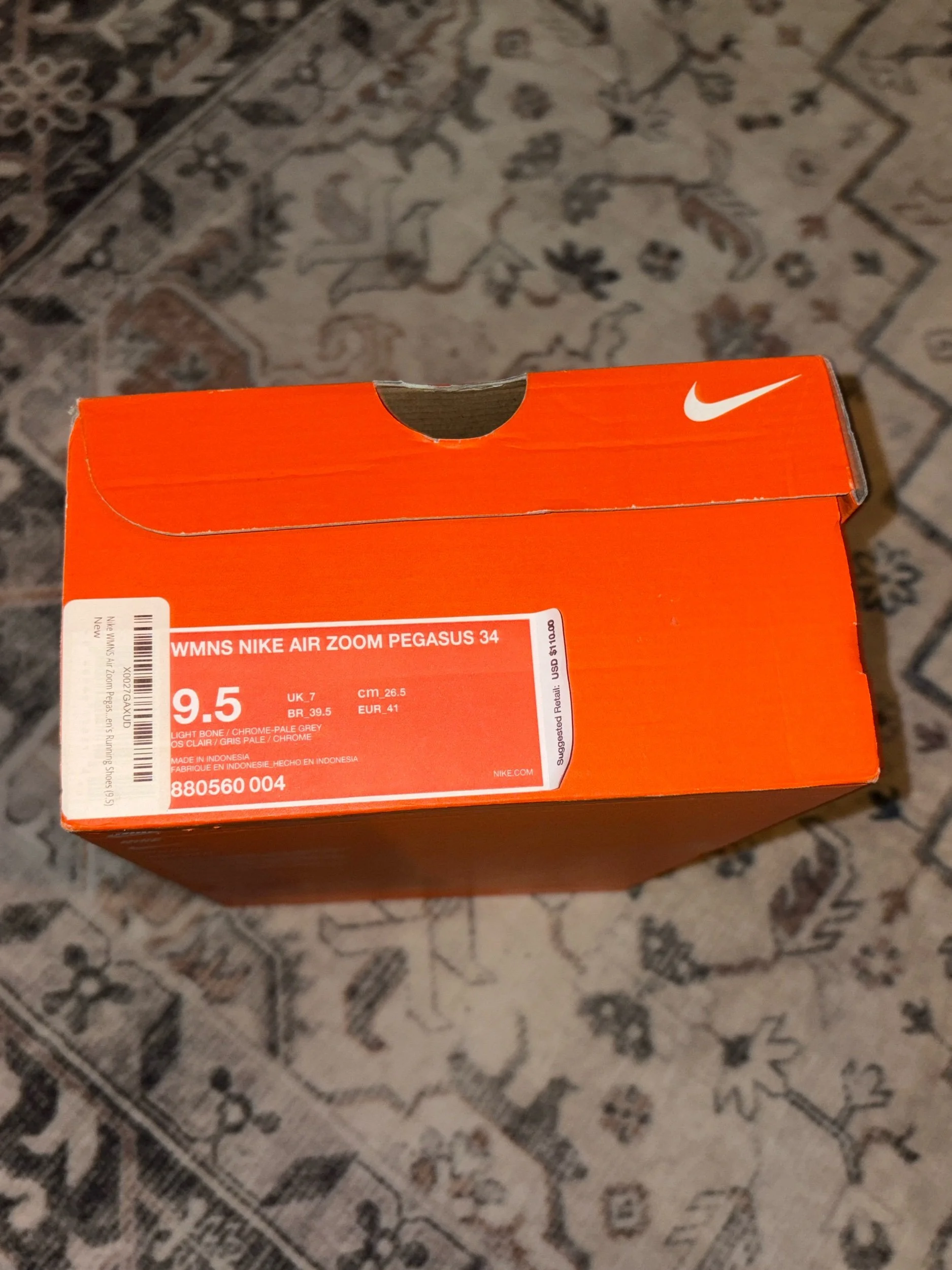 Online Store › Women’s Nike Air Zoom Pegasus 34 Size 9.5 Image 1 of 3 Image 2 of 3 Image 3 of 3 Women’s Nike Air Zoom Pegasus 34 Size 9.5 $33.00 Very excellent condition. Likely just tried on and returned to the box. Add To Cart Added! Very excellent condition. Likely just tried on and returned to the box.