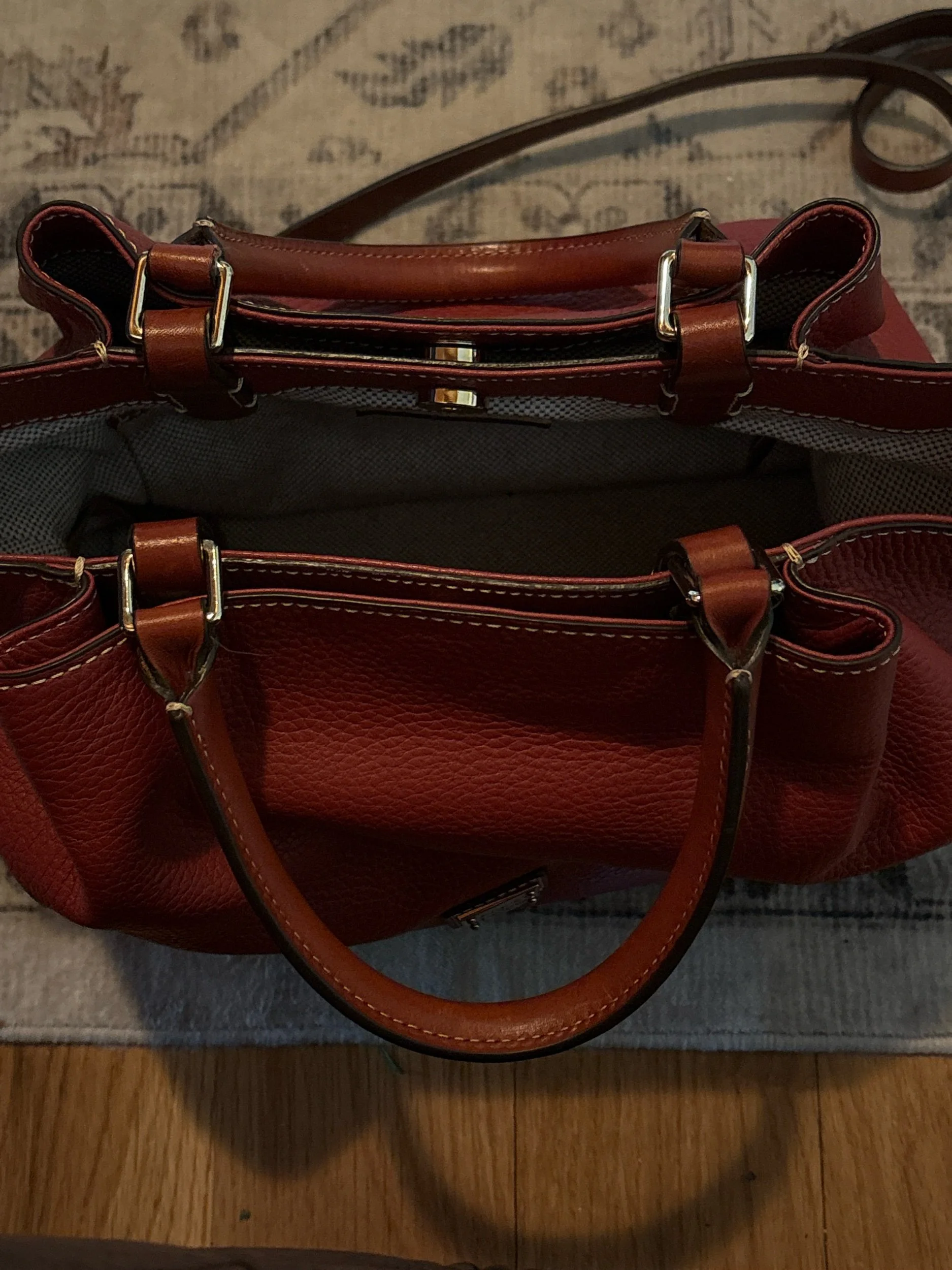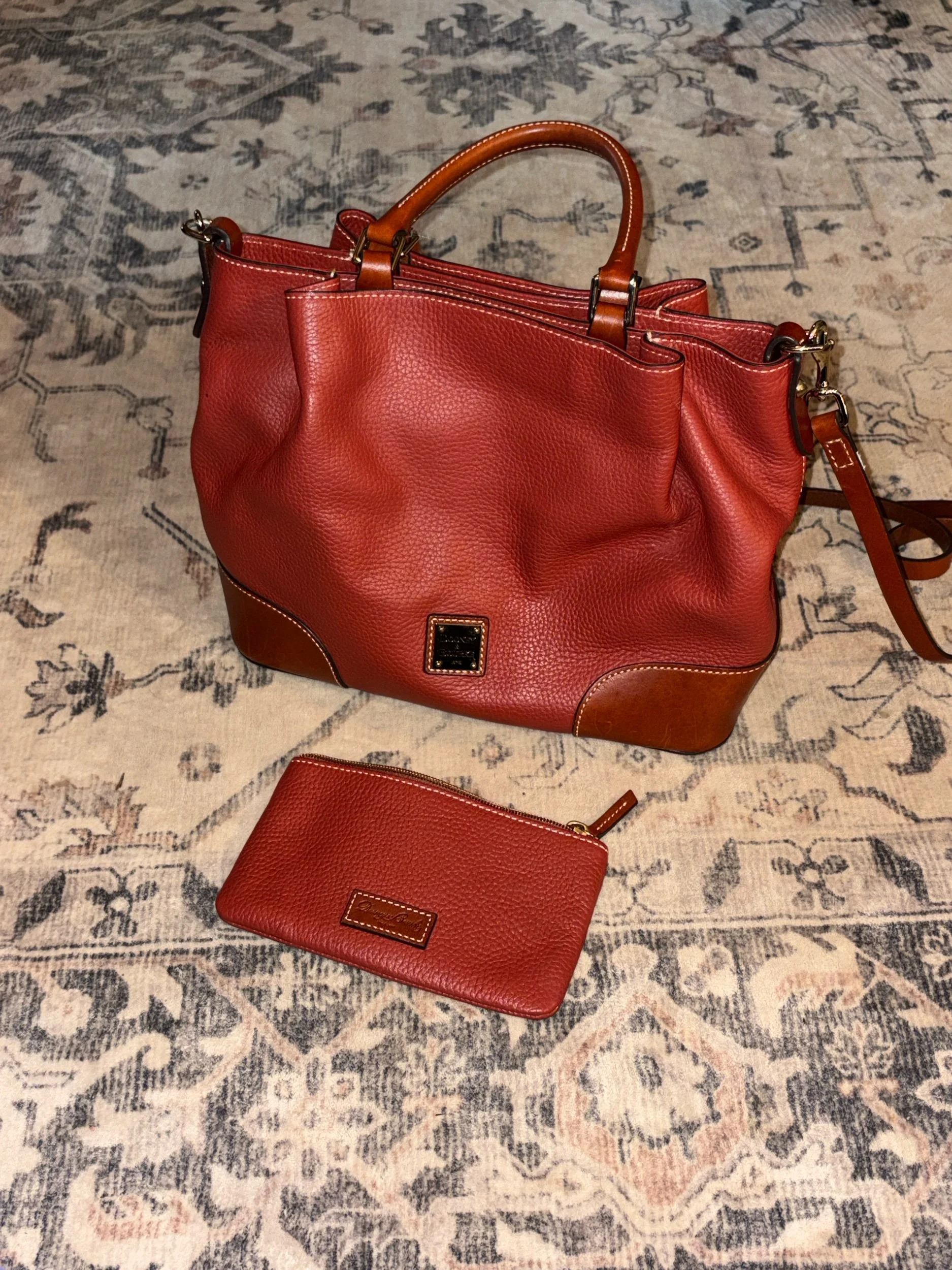 Online Store › Brick Red Dooney & Bourke pebbled leather Brenna satchel with matching zipper pouch Image 1 of 5 Image 2 of 5 Image 3 of 5 Image 4 of 5 Image 5 of 5 Brick Red Dooney & Bourke pebbled leather Brenna satchel with matching zipper pouch $90.00 Excellent condition! Lots of pockets and compartments for organization. Add To Cart Added! Excellent condition! Lots of pockets and compartments for organization.