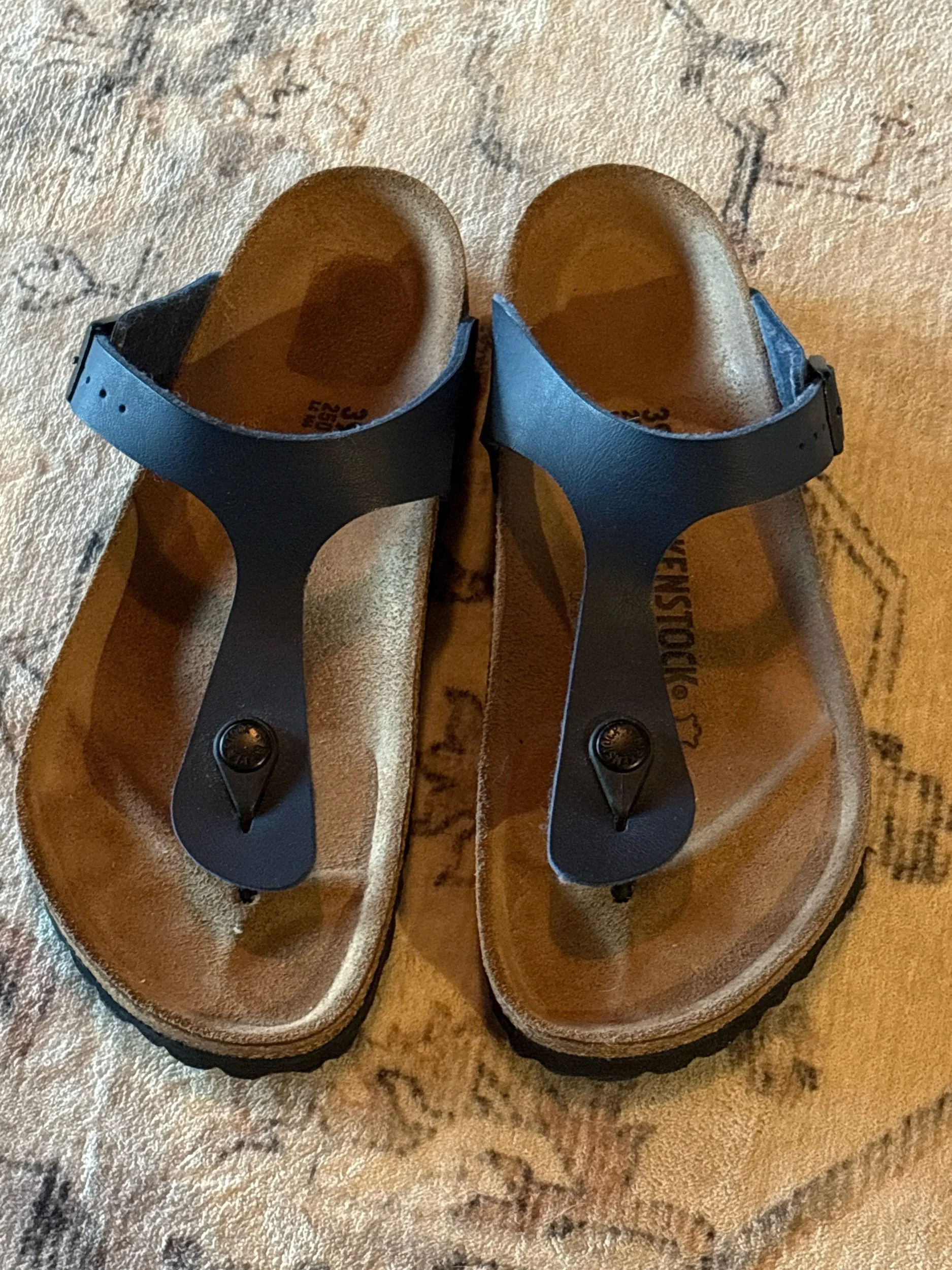 These look like they were tried on and maybe worn inside for a bit, but the soles aren’t scuffed or worn at all. Really great condition and birks last forever!