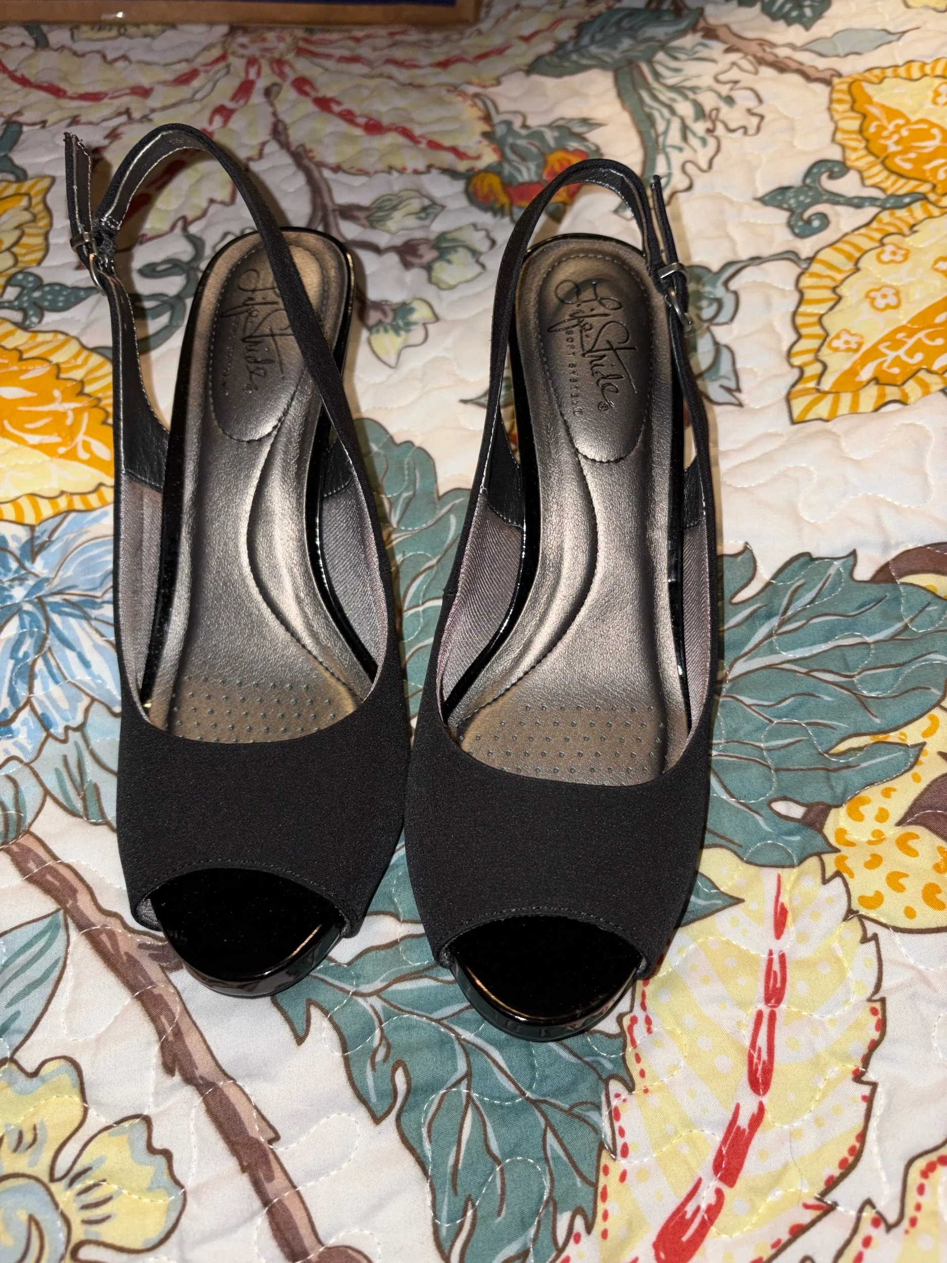 Online Store › New size 8.5 LifeStride Women's Teller slingback peep-toe pumps in black Image 1 of 3 Image 2 of 3 Image 3 of 3 New size 8.5 LifeStride Women's Teller slingback peep-toe pumps in black $18.00 Great brand for comfort and style - new without box. Add To Cart Added! Great brand for comfort and style - new without box.
