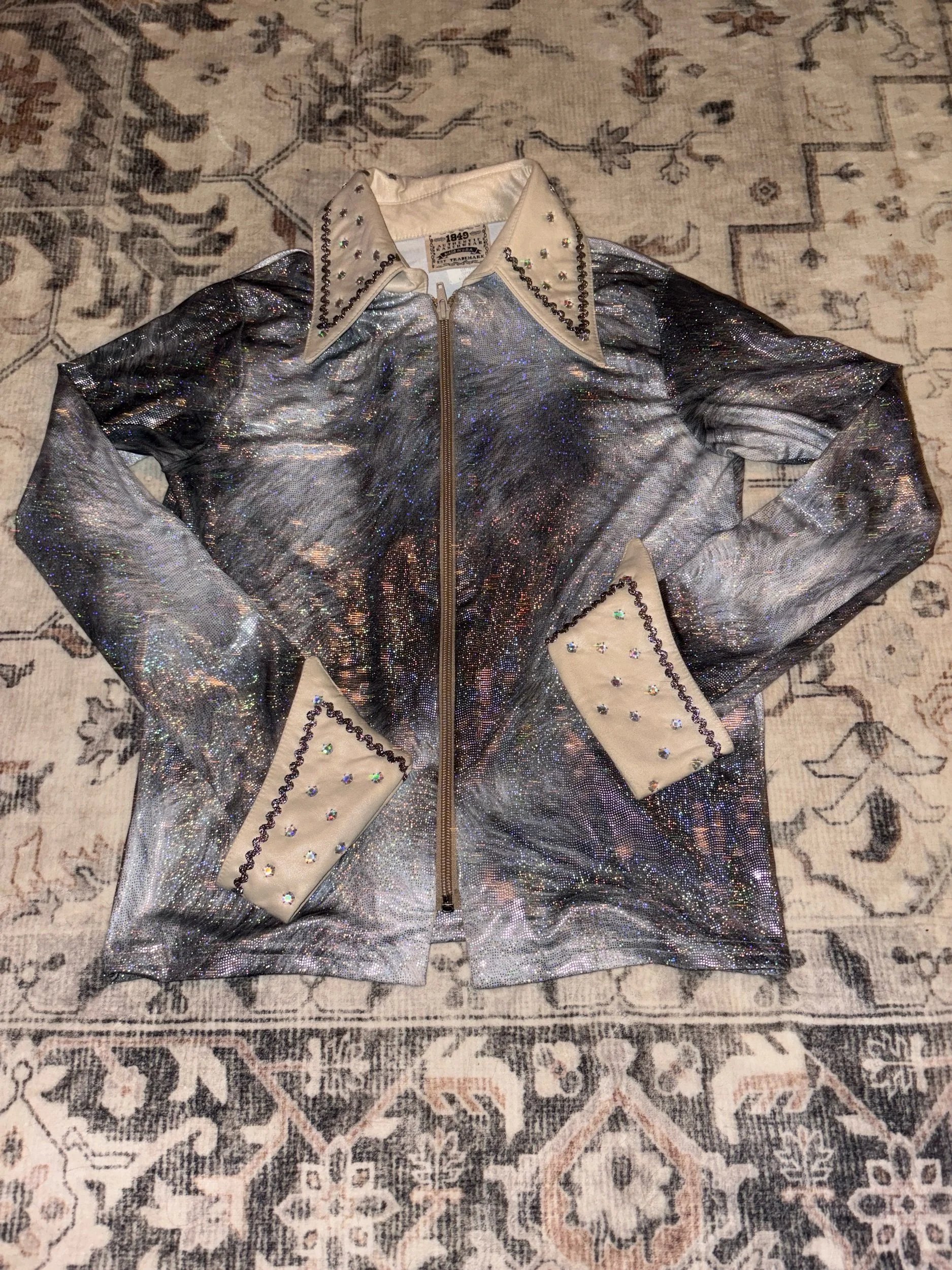 Online Store › Ranchwear Riding/competing - horse show shirt size small Image 1 of 3 Image 2 of 3 Image 3 of 3 Ranchwear Riding/competing - horse show shirt size small $20.00 Zipper front, nice give in fabric. Lots of rhinestones! Great condition! Add To Cart Added! Zipper front, nice give in fabric. Lots of rhinestones! Great condition!