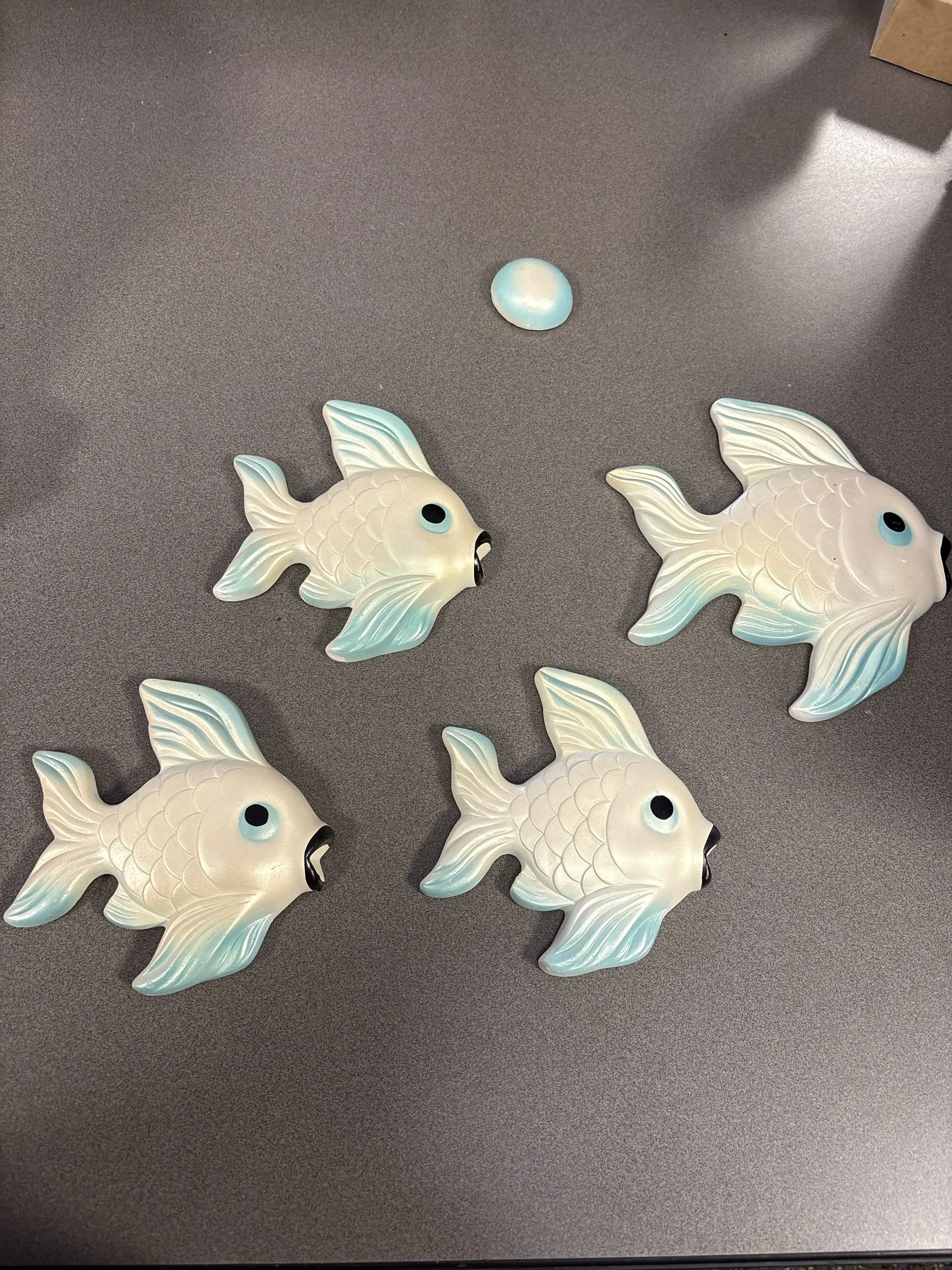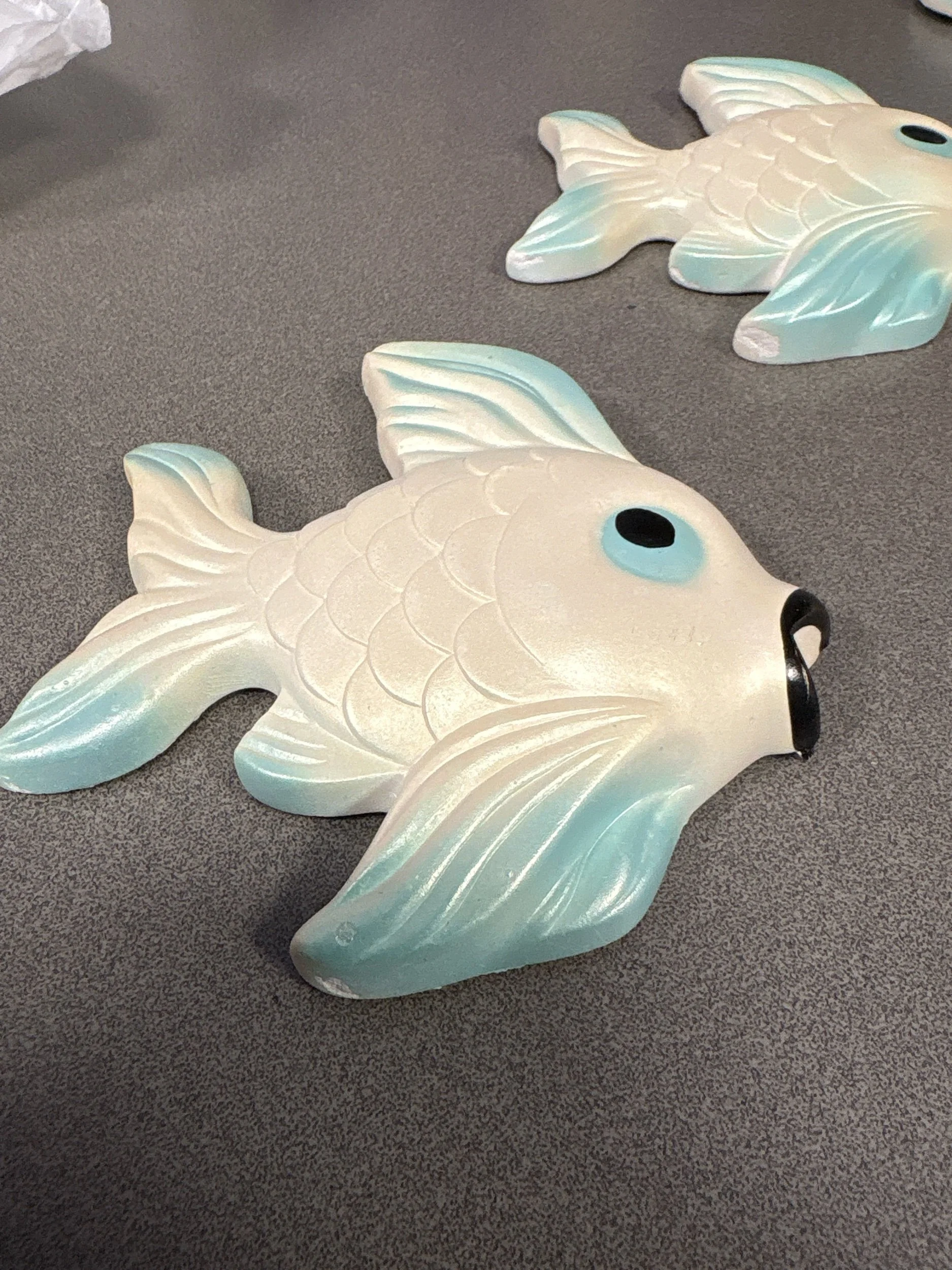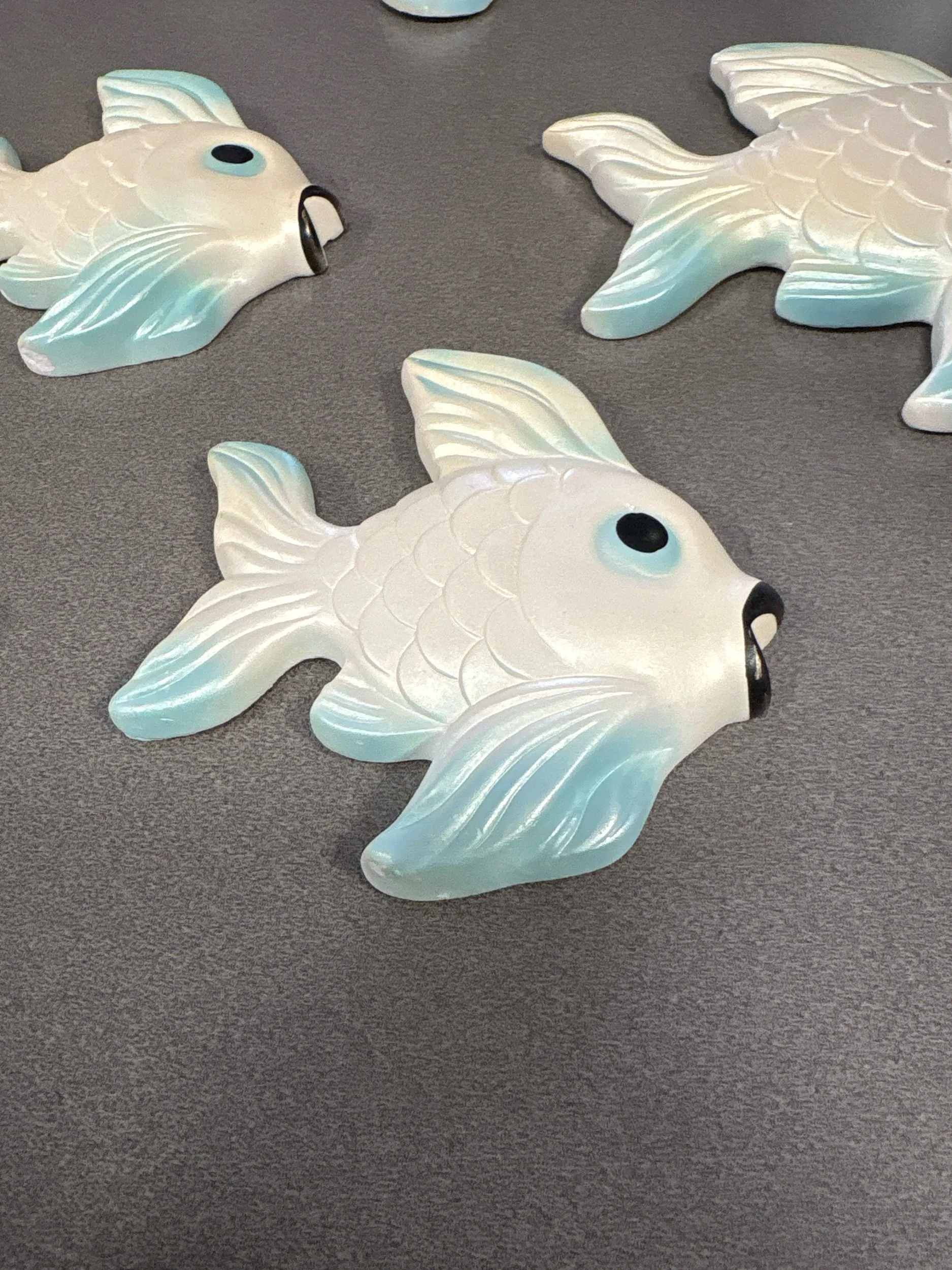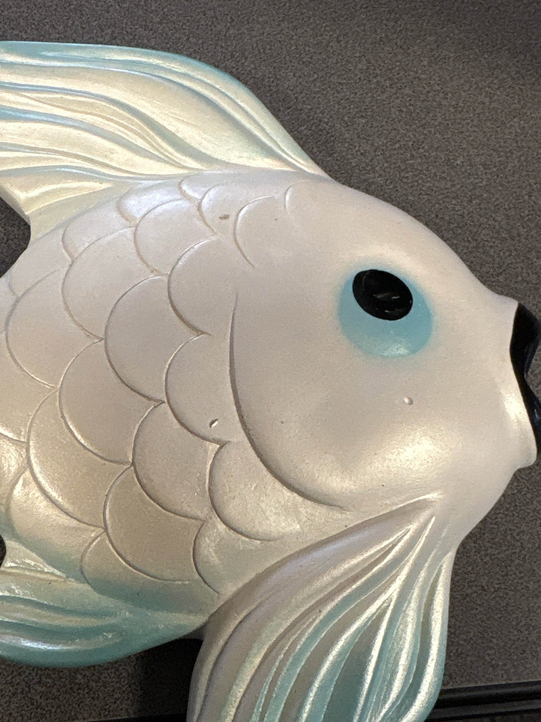 Material: Hand-painted chalkware (plaster) with iridescent or pearlized finishes.