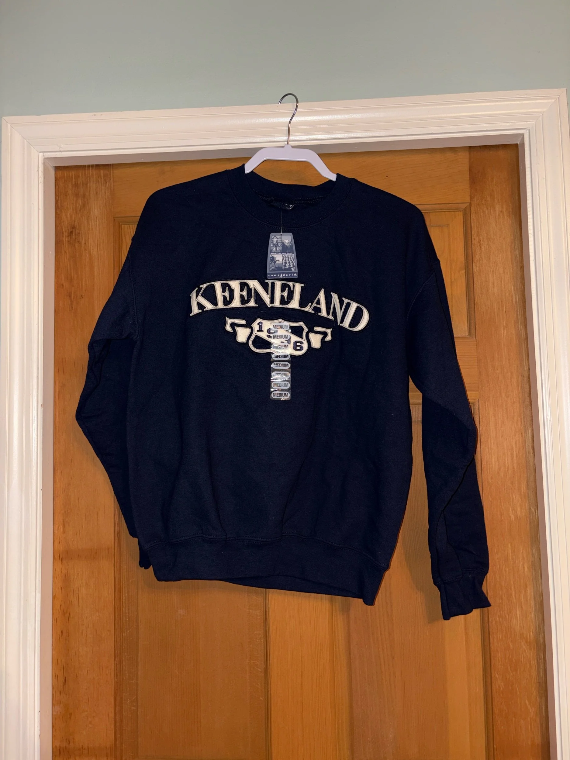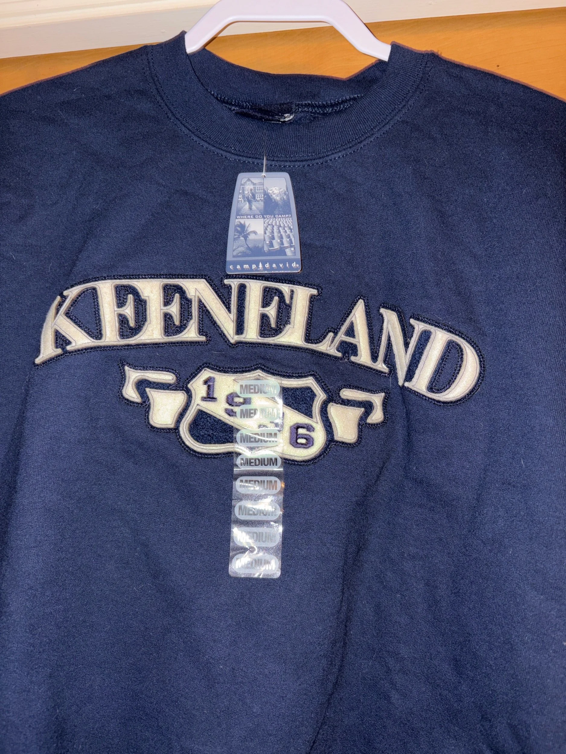 Online Store › Navy Medium Keeneland 1936 Crew Neck Sweatshirt NWT Camp David Image 1 of 4 Image 2 of 4 Image 3 of 4 Image 4 of 4 Navy Medium Keeneland 1936 Crew Neck Sweatshirt NWT Camp David $25.00 Retailed for $50. Excellent condition. Maybe vintage? Add To Cart Added! Retailed for $50. Excellent condition. Maybe vintage?