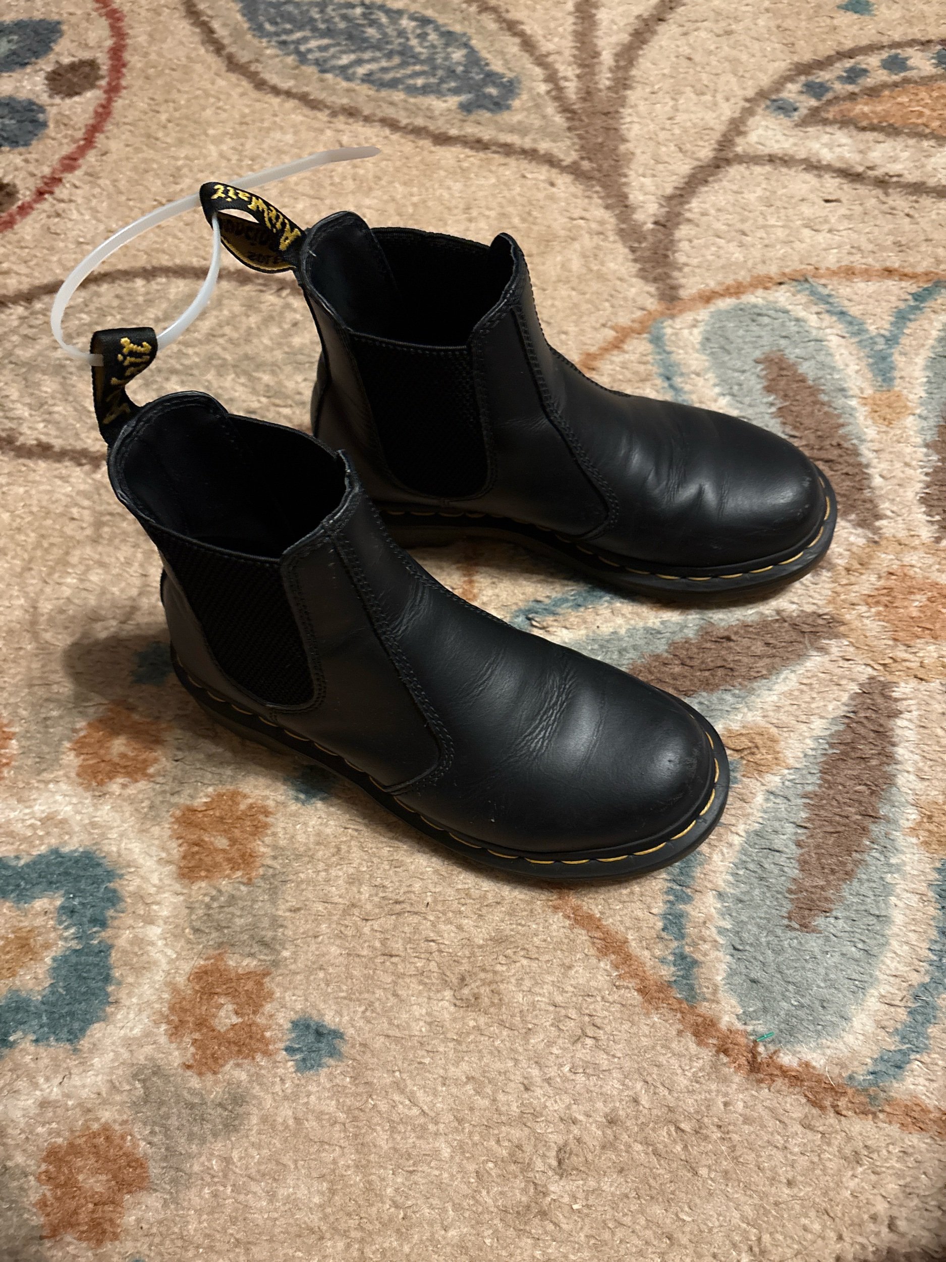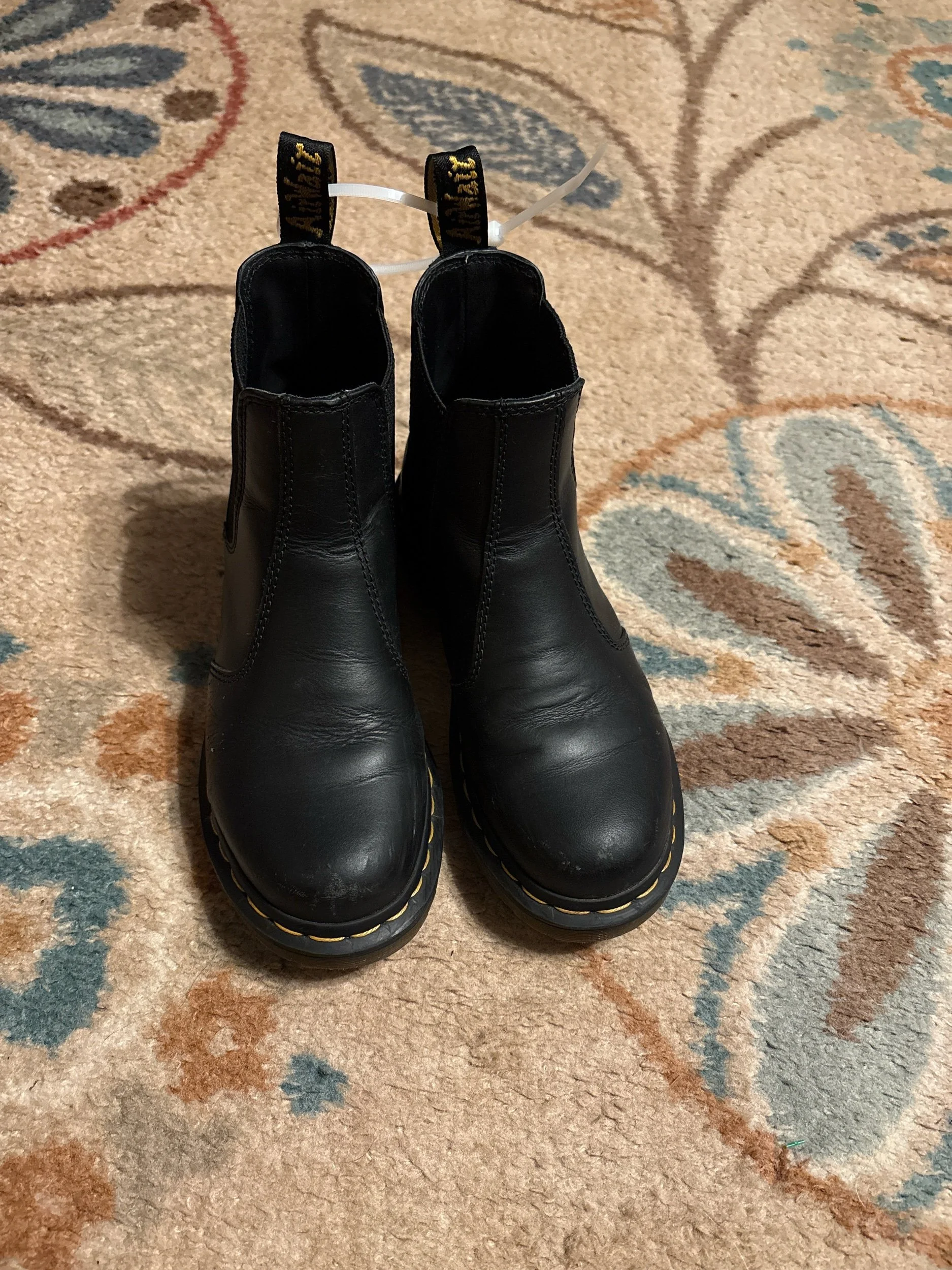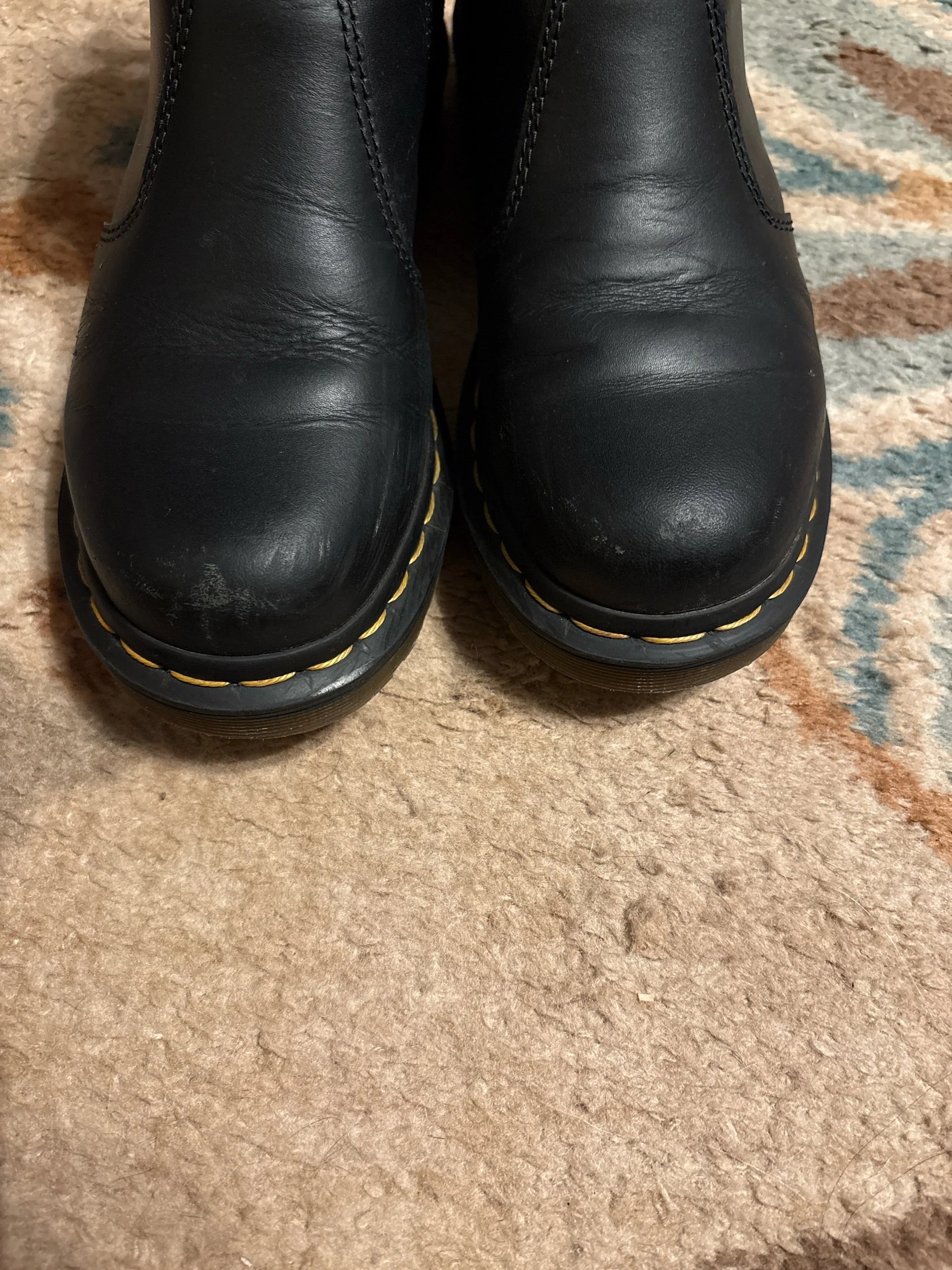 Online Store › Dr. Martens Chelsea Boots size EU 37, US ladies 6 Image 1 of 4 Image 2 of 4 Image 3 of 4 Image 4 of 4 Dr. Martens Chelsea Boots size EU 37, US ladies 6 $20.00 Great condition but some minor scuffing on toes. Add To Cart Added! Great condition but some minor scuffing on toes.