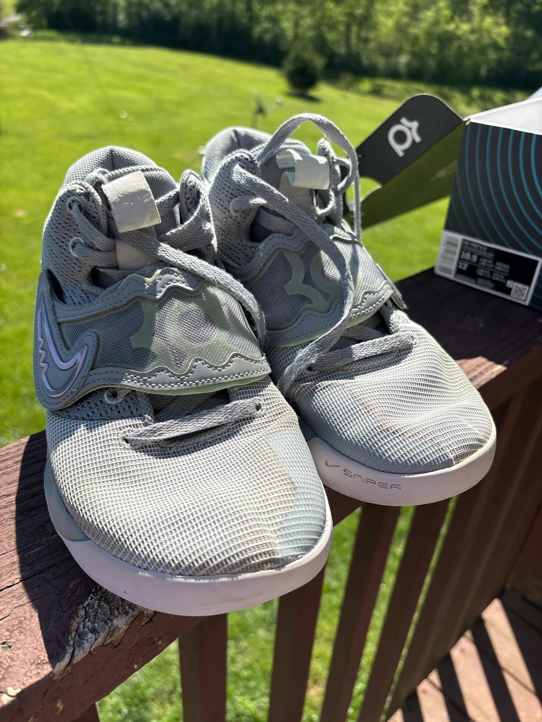 Online Store › Size 10.5 Nike KD Trey 5 X DD9538-012 Kevin Durant Shoes NEW Particle Grey Image 1 of 3 Image 2 of 3 Image 3 of 3 Size 10.5 Nike KD Trey 5 X DD9538-012 Kevin Durant Shoes NEW Particle Grey $25.00 The shoes show some minor wear, but look great and have lots of life left in them! Add To Cart Added! The shoes show some minor wear, but look great and have lots of life left in them!