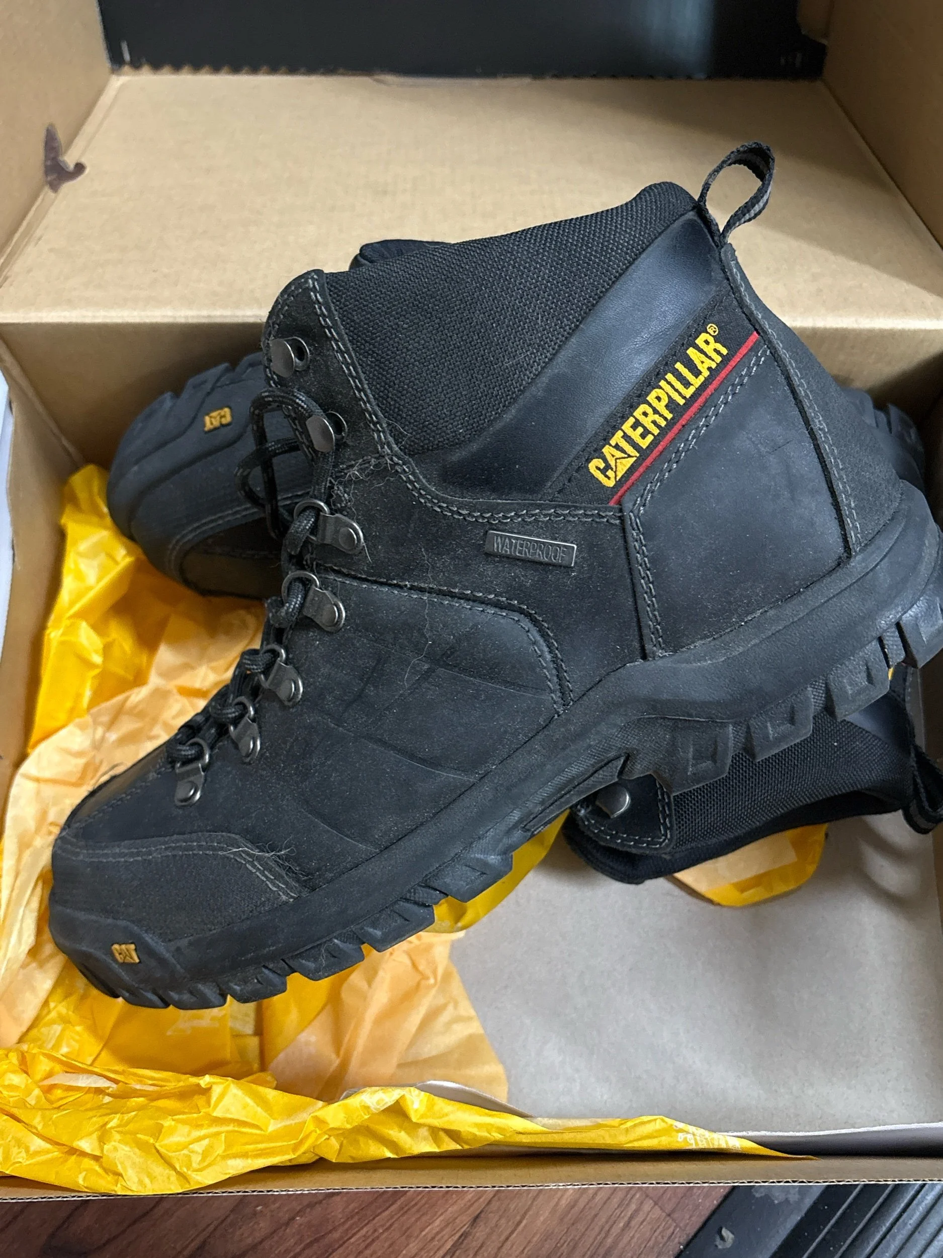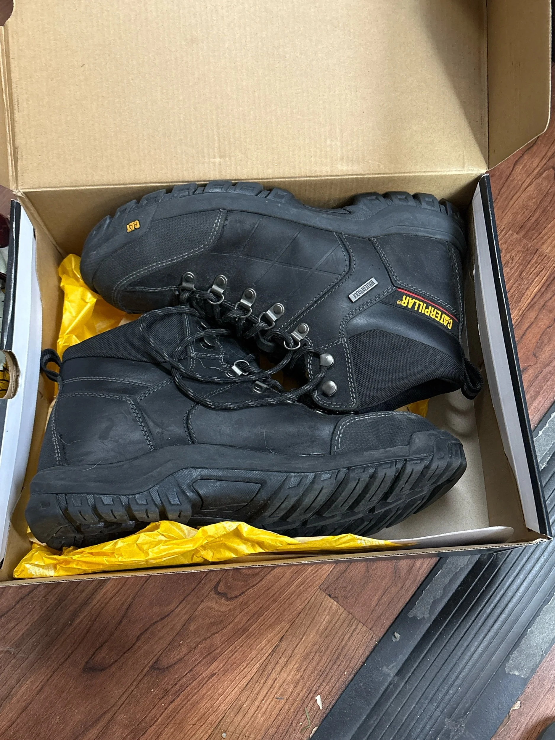 Online Store › CAT Men's Threshold Waterproof Work Boots size 11 Image 1 of 3 Image 2 of 3 Image 3 of 3 CAT Men's Threshold Waterproof Work Boots size 11 $48.00 They may have been tried on, but look brand new! These are serious boots! Retail ranges from $99-115. Grab a great deal. Add To Cart Added! They may have been tried on, but look brand new! These are serious boots! Retail ranges from $99-115. Grab a great deal.