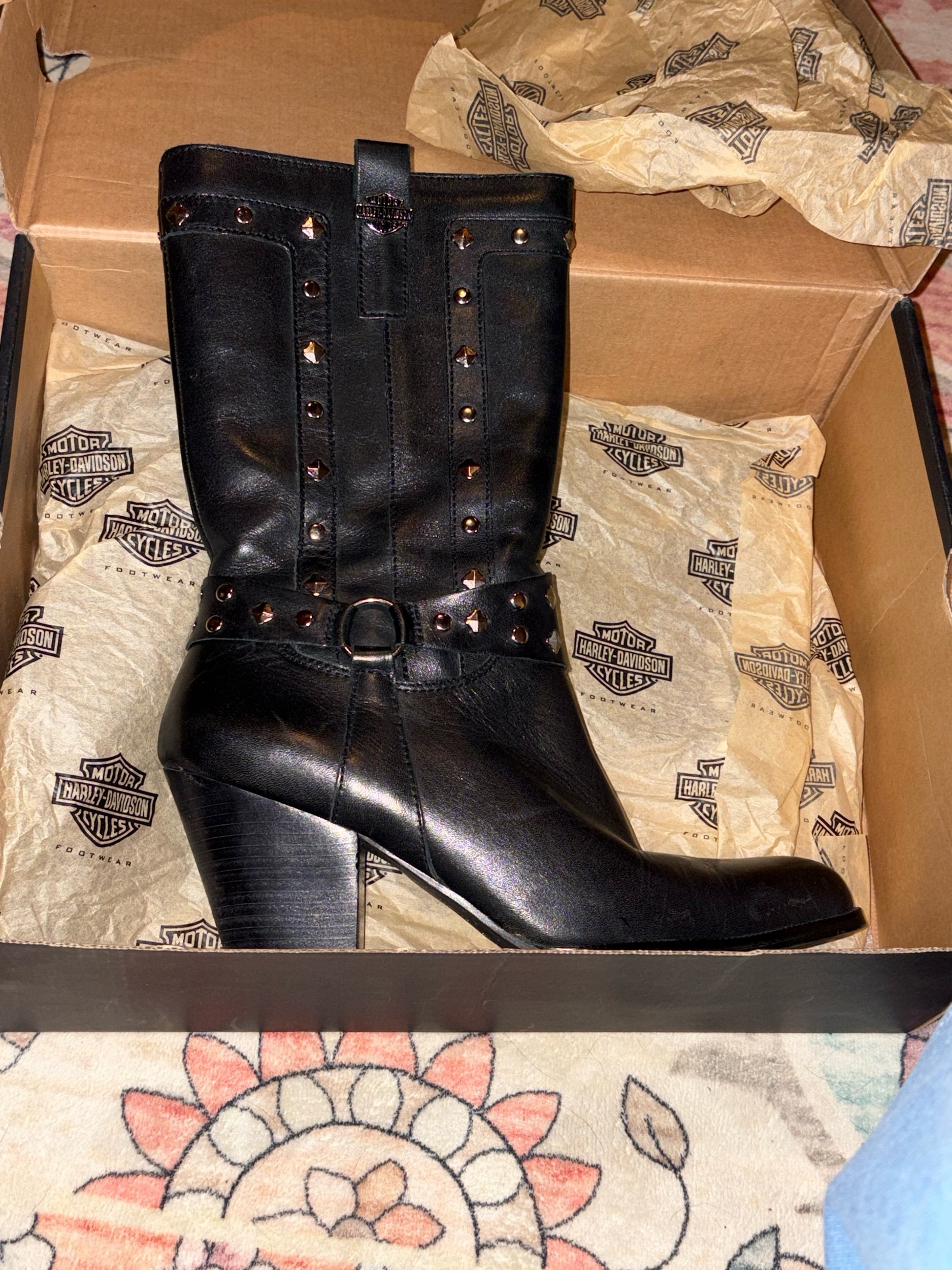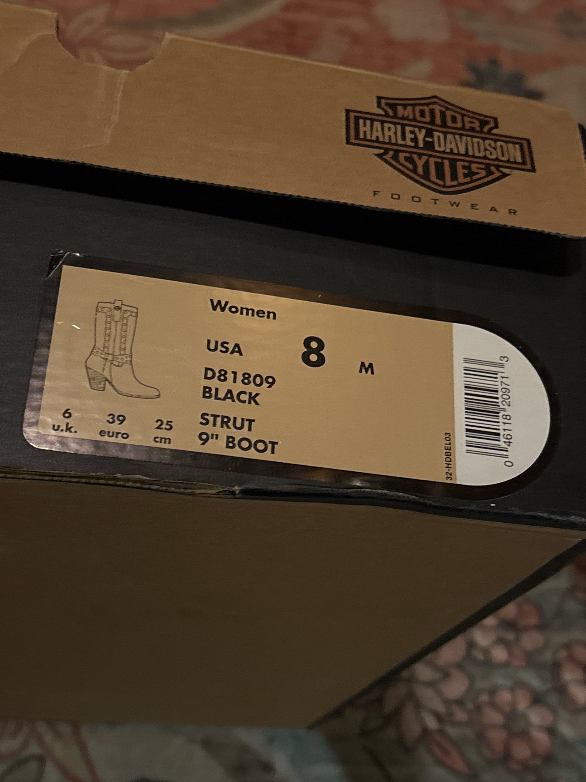 Online Store › Women’s Harley Davidson Size 8 Strut 9” Boot w/box Image 1 of 4 Image 2 of 4 Image 3 of 4 Image 4 of 4 Women’s Harley Davidson Size 8 Strut 9” Boot w/box $60.00 Boots have some wear on soles but really look great! Add To Cart Added! Boots have some wear on soles but really look great!