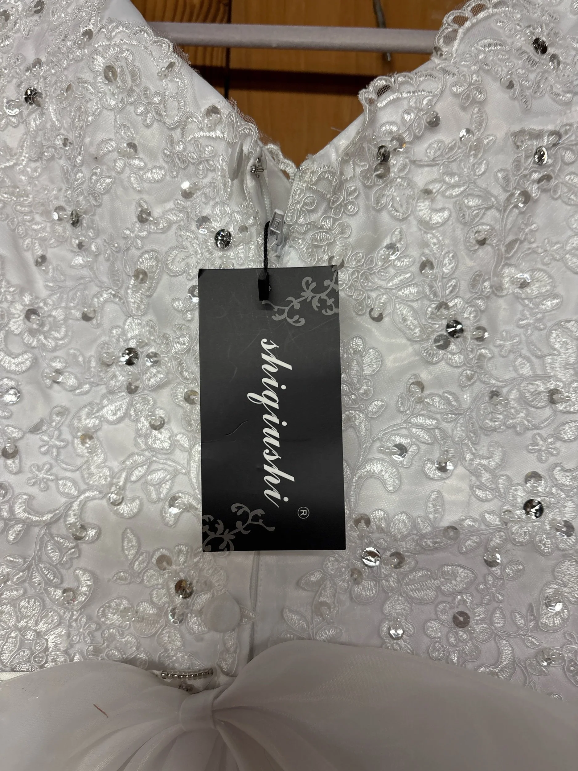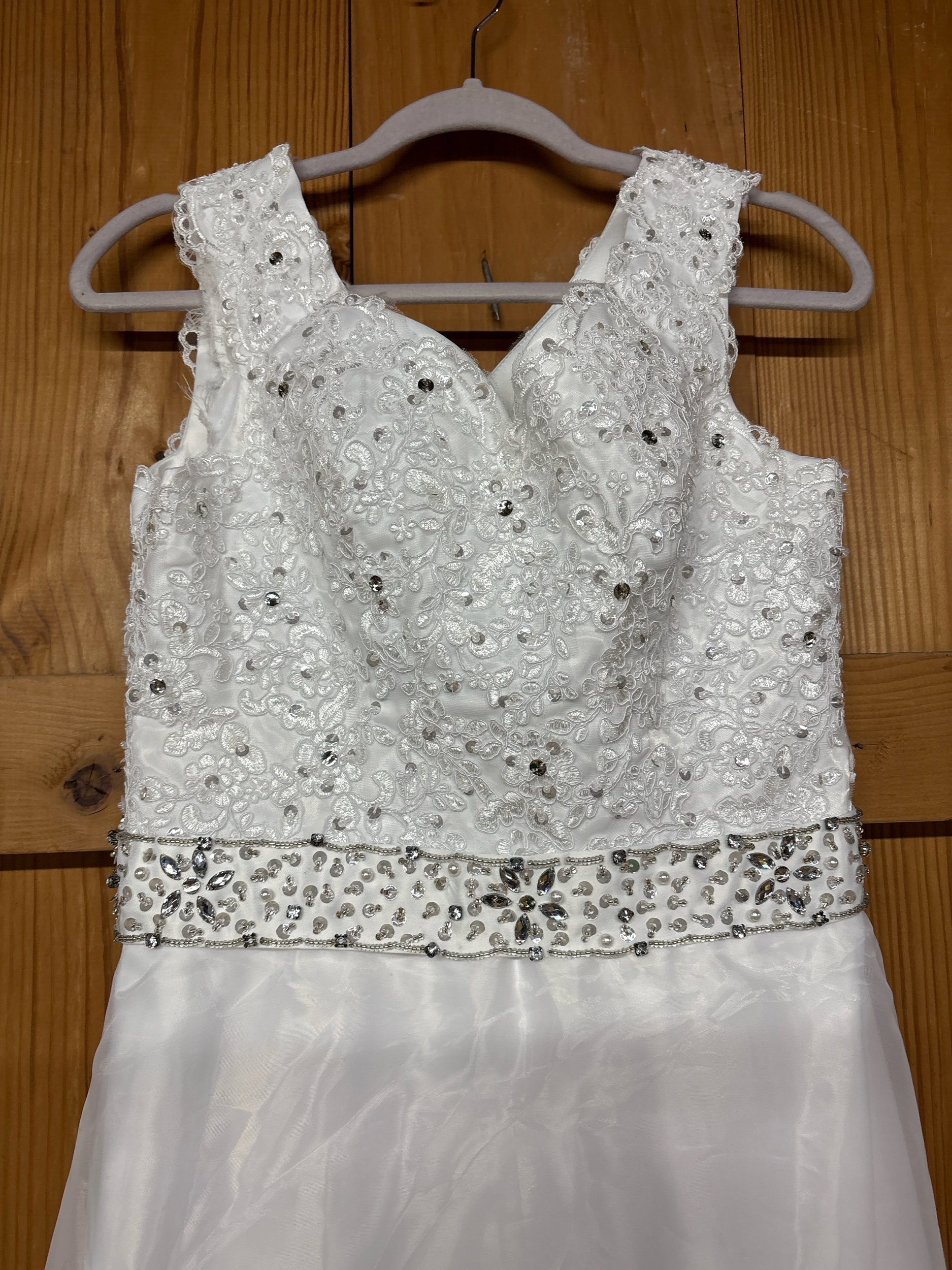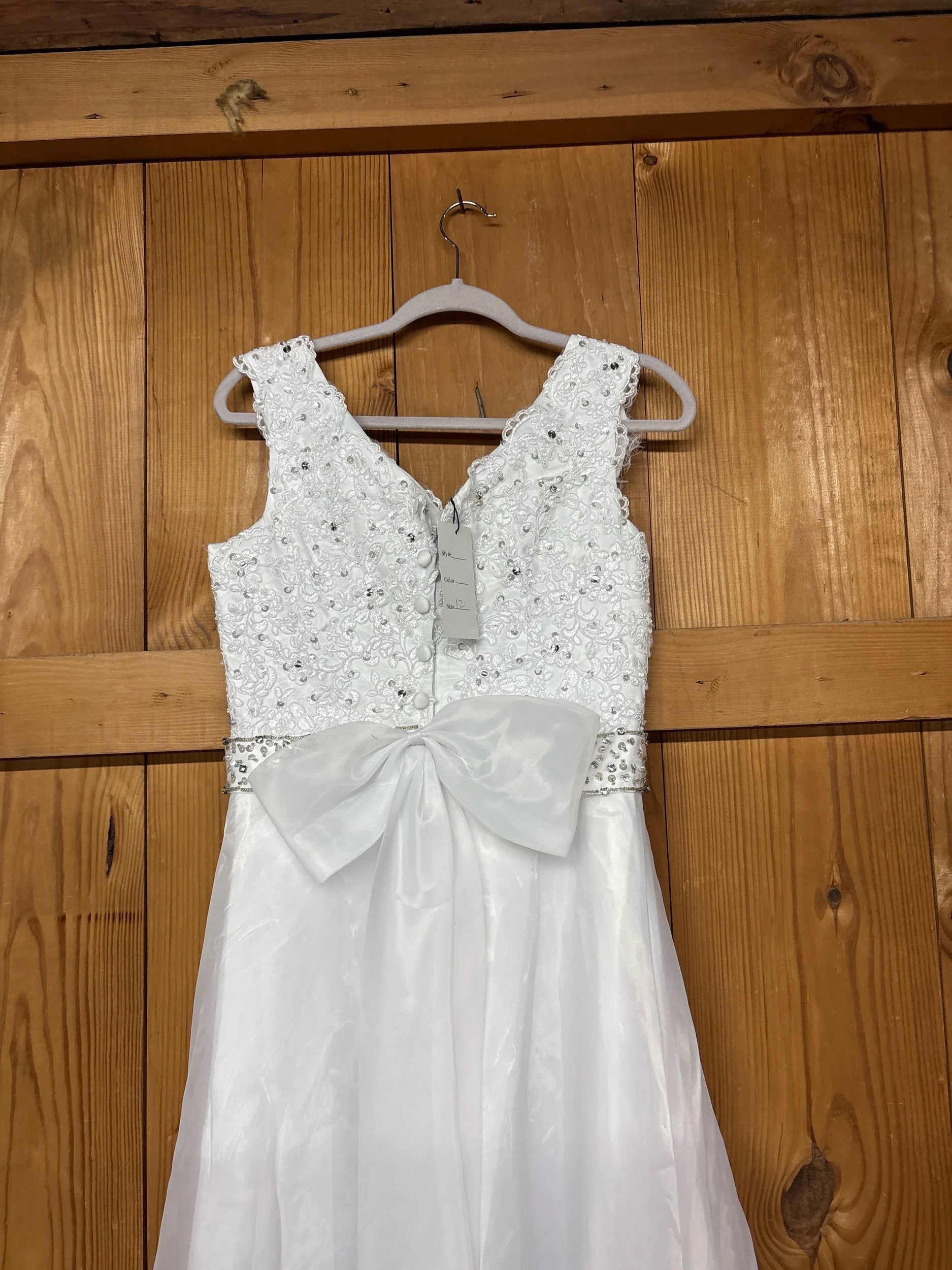Online Store › New with tag size 12 wedding dress. Image 1 of 5 Image 2 of 5 Image 3 of 5 Image 4 of 5 Image 5 of 5 New with tag size 12 wedding dress. $75.00 Really beautiful and brand new. It has not been altered or bustled. It does have a slight train. Add To Cart Added! Really beautiful and brand new. It has not been altered or bustled. It does have a slight train.