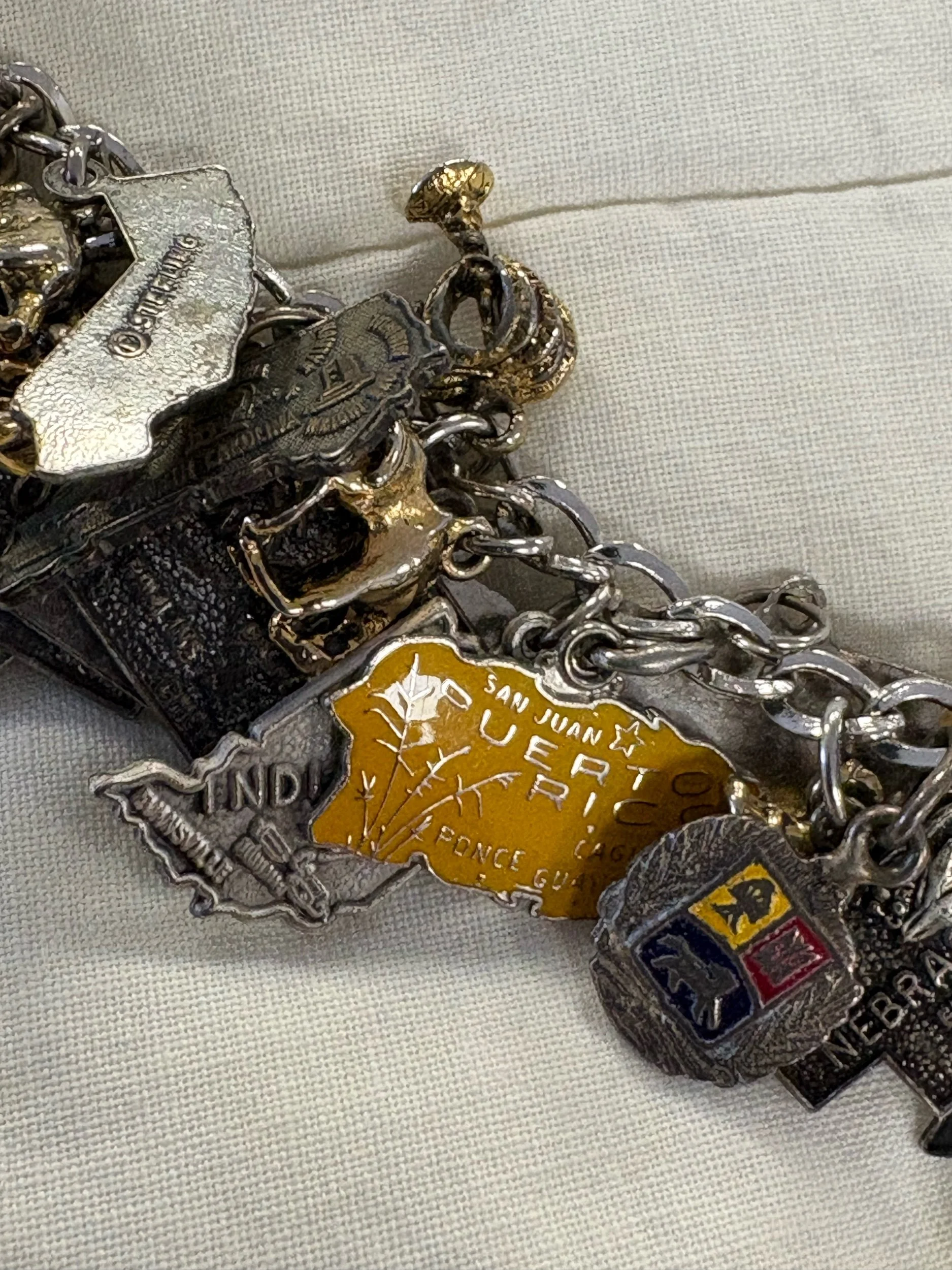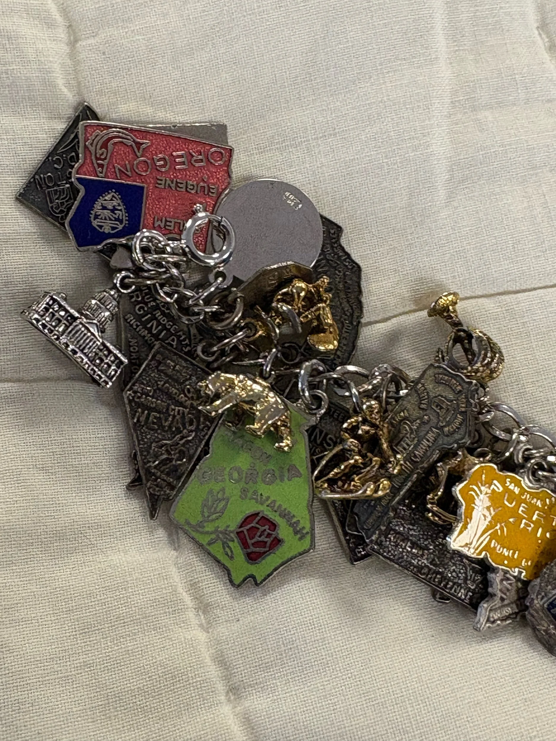 Online Store › Travel bracelet with charms oodles and oodles of charms Image 1 of 5 Image 2 of 5 Image 3 of 5 Image 4 of 5 Image 5 of 5 Travel bracelet with charms oodles and oodles of charms $140.00 So many charms from various locations - domestic and international! Add To Cart Added! So many charms from various locations - domestic and international!