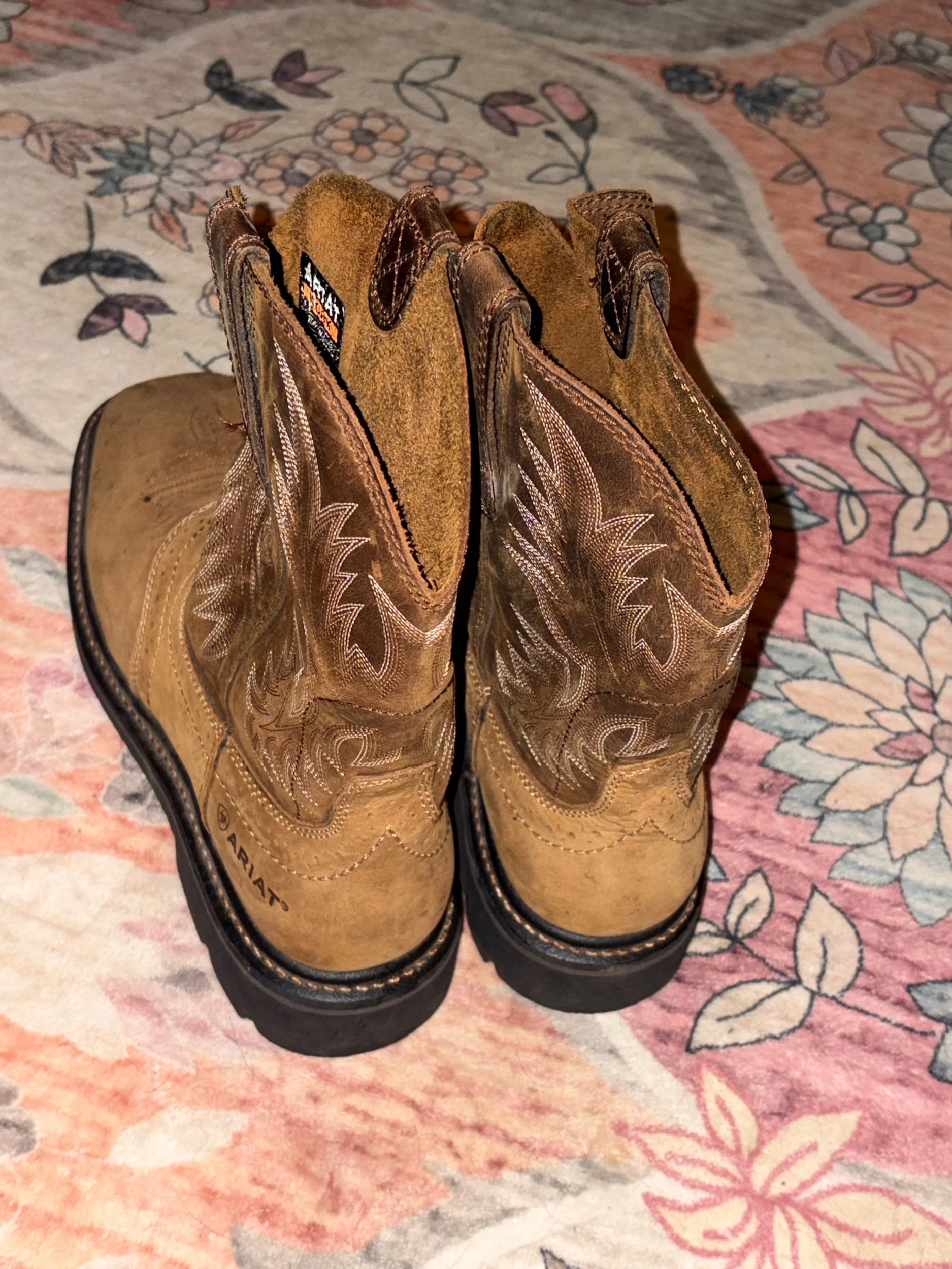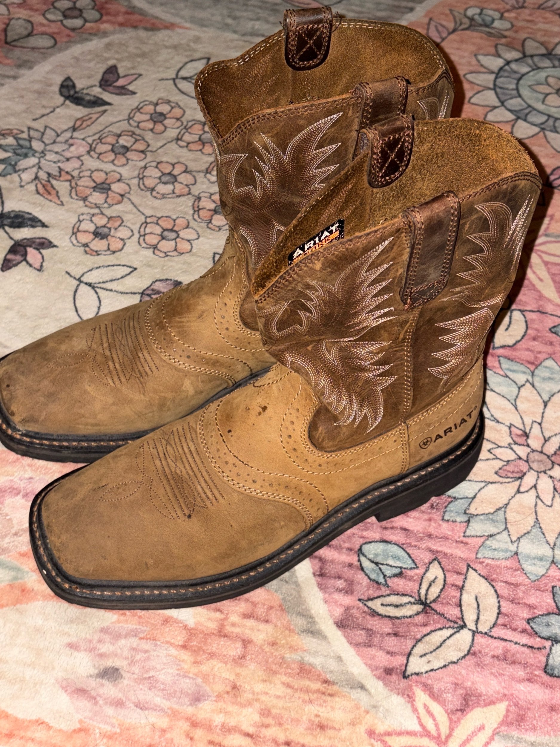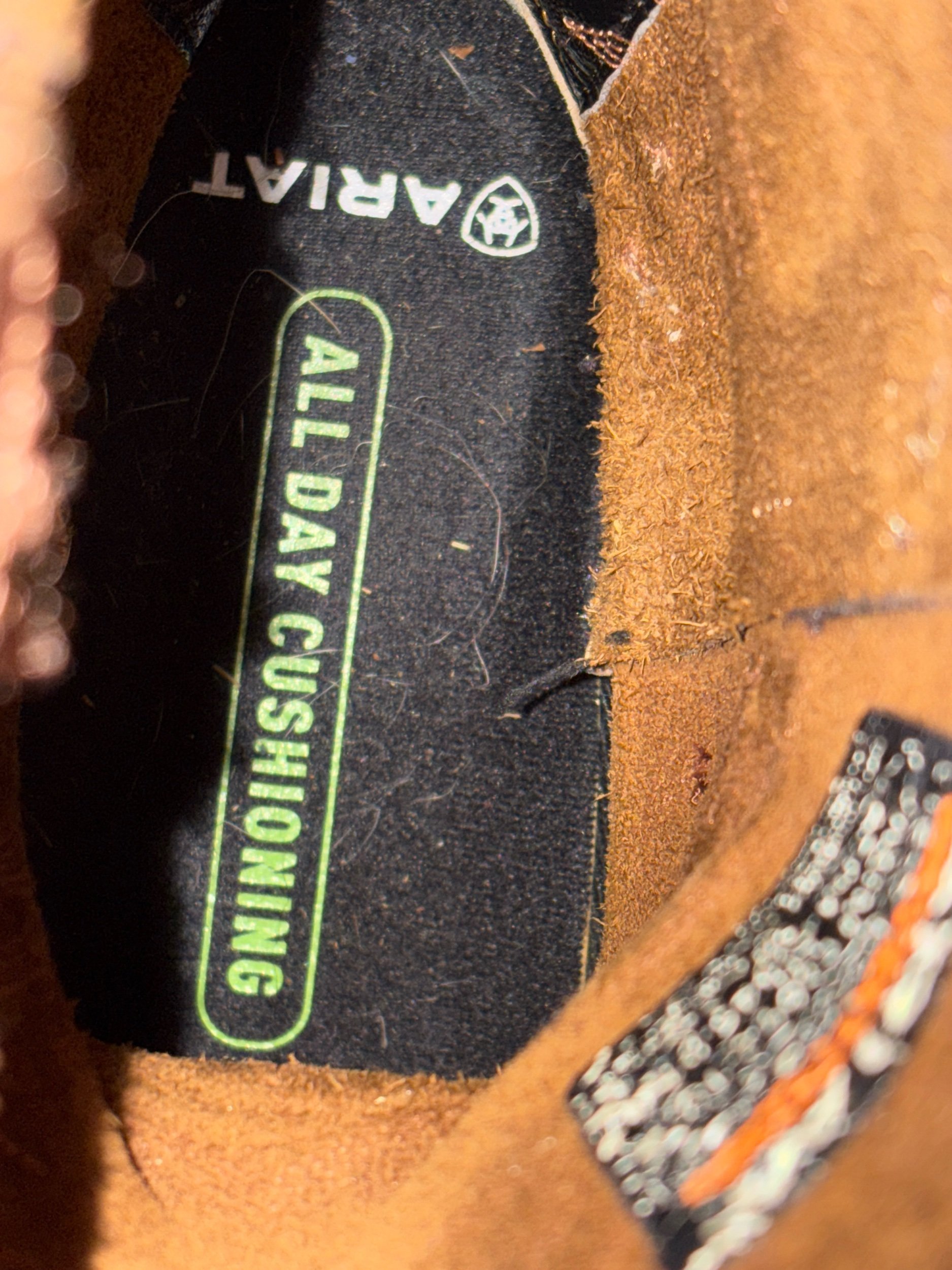 Online Store › Ariat Leather Boots size 9D - all day cushioning Image 1 of 5 Image 2 of 5 Image 3 of 5 Image 4 of 5 Image 5 of 5 Ariat Leather Boots size 9D - all day cushioning $25.00 Really good condition - lots of life left. Minor marks and wear. Retail for $180 new. Add To Cart Added! Really good condition - lots of life left. Minor marks and wear. Retail for $180 new.