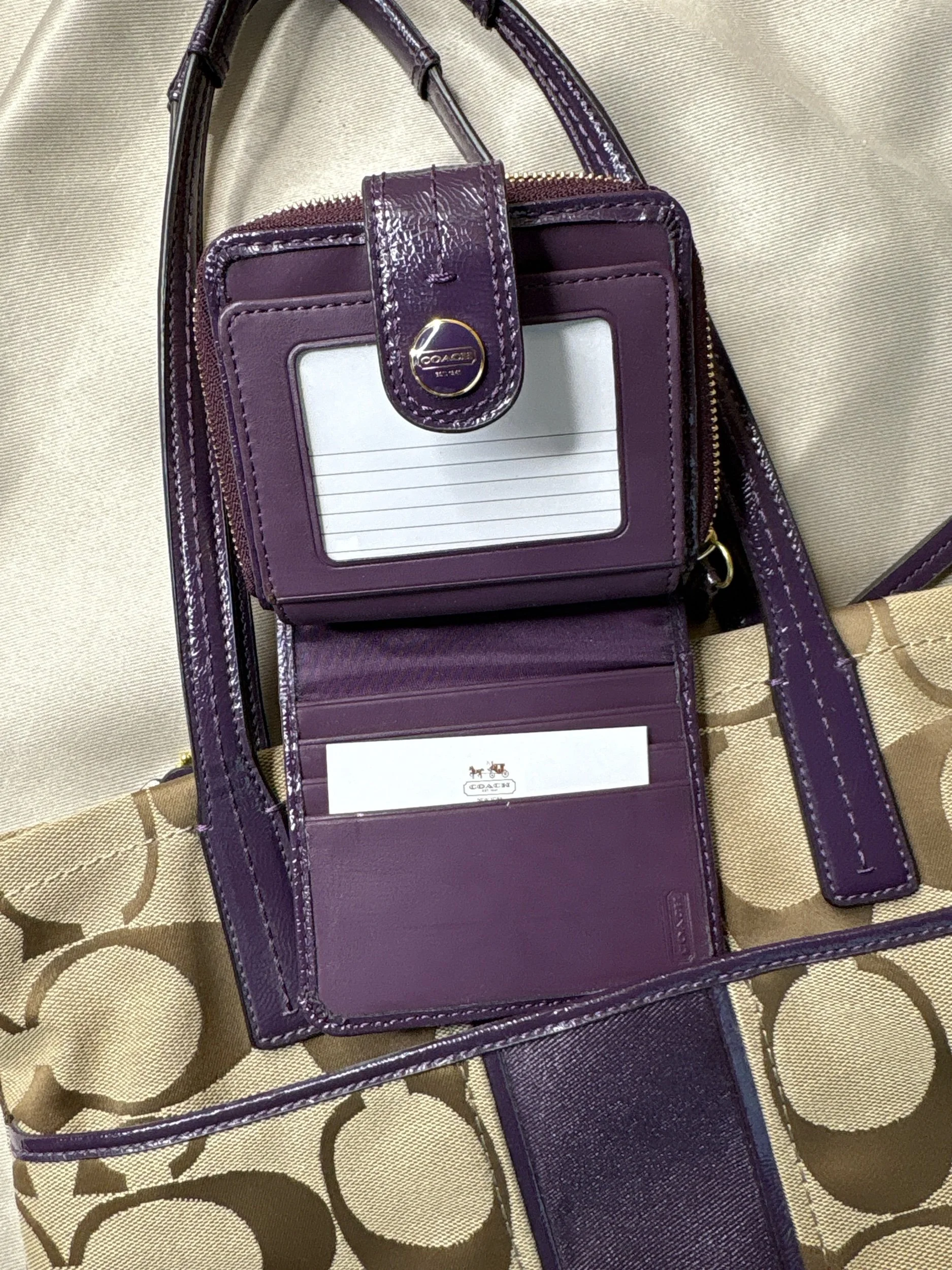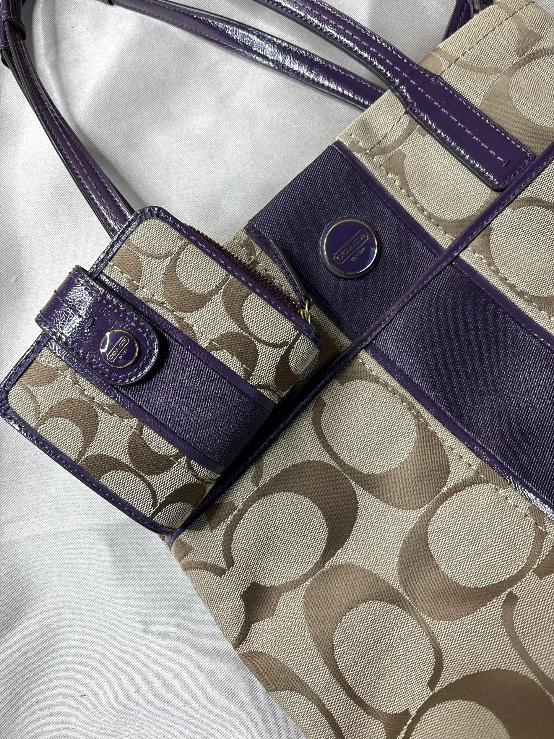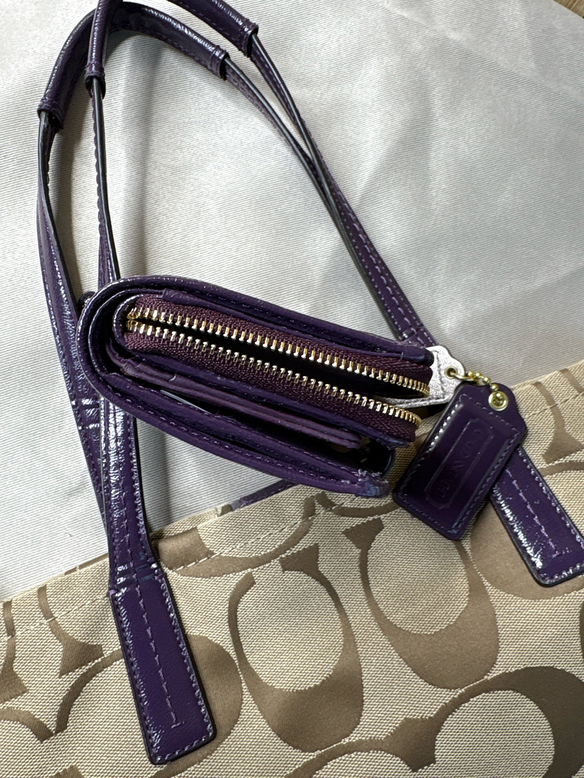 Online Store › Coach Signature Bag and Wallet Set Image 1 of 5 Image 2 of 5 Image 3 of 5 Image 4 of 5 Image 5 of 5 Coach Signature Bag and Wallet Set $75.00 Both items appear very clean and show nowhere. They appear to be in new condition. Add To Cart Added! Both items appear very clean and show nowhere. They appear to be in new condition.