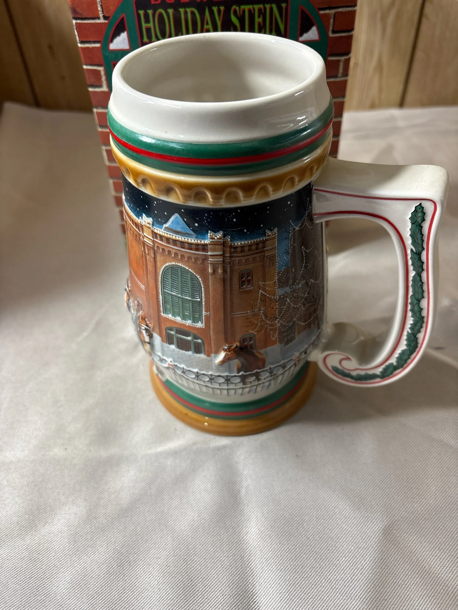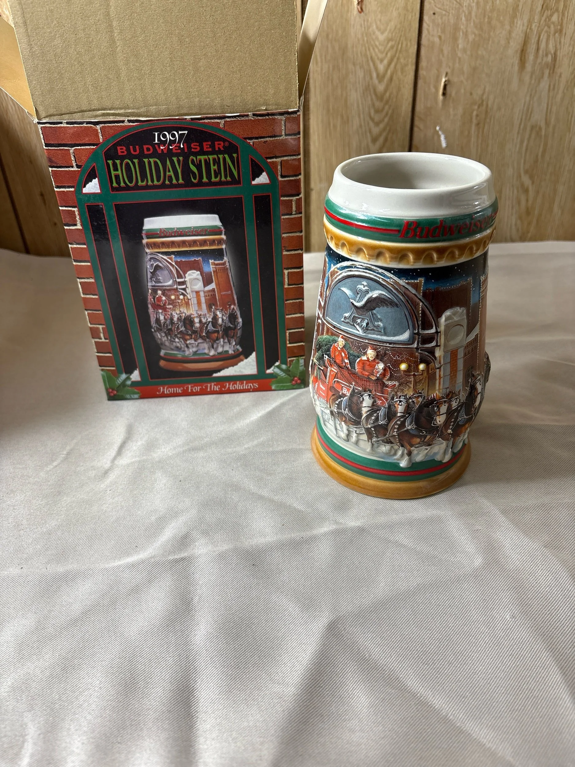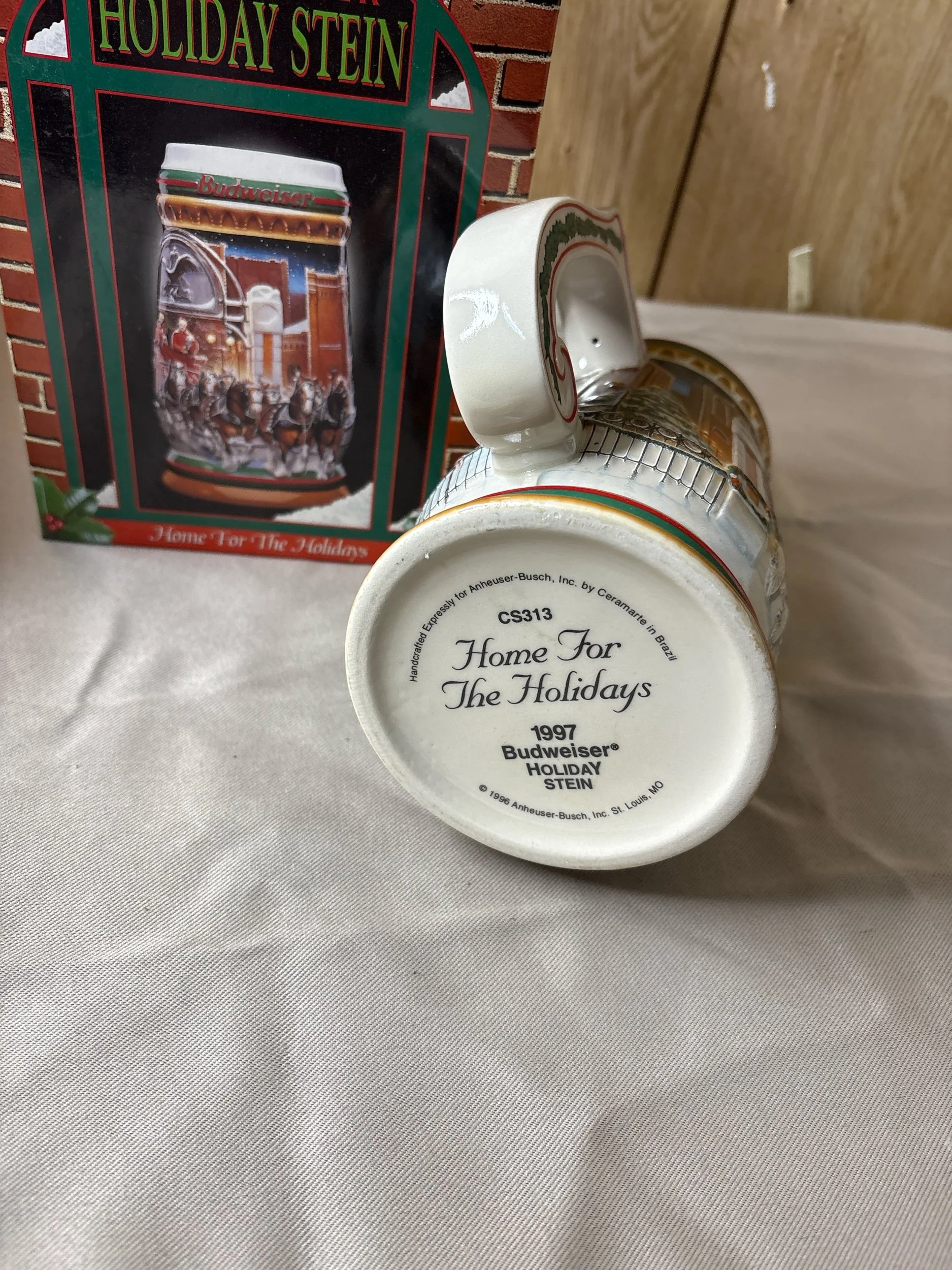 Online Store › 1997 Budweiser holiday stein “home for the holidays” Image 1 of 5 Image 2 of 5 Image 3 of 5 Image 4 of 5 Image 5 of 5 1997 Budweiser holiday stein “home for the holidays” $10.00 Excellent condition, complete with box and certificate. Add To Cart Added! Excellent condition, complete with box and certificate.