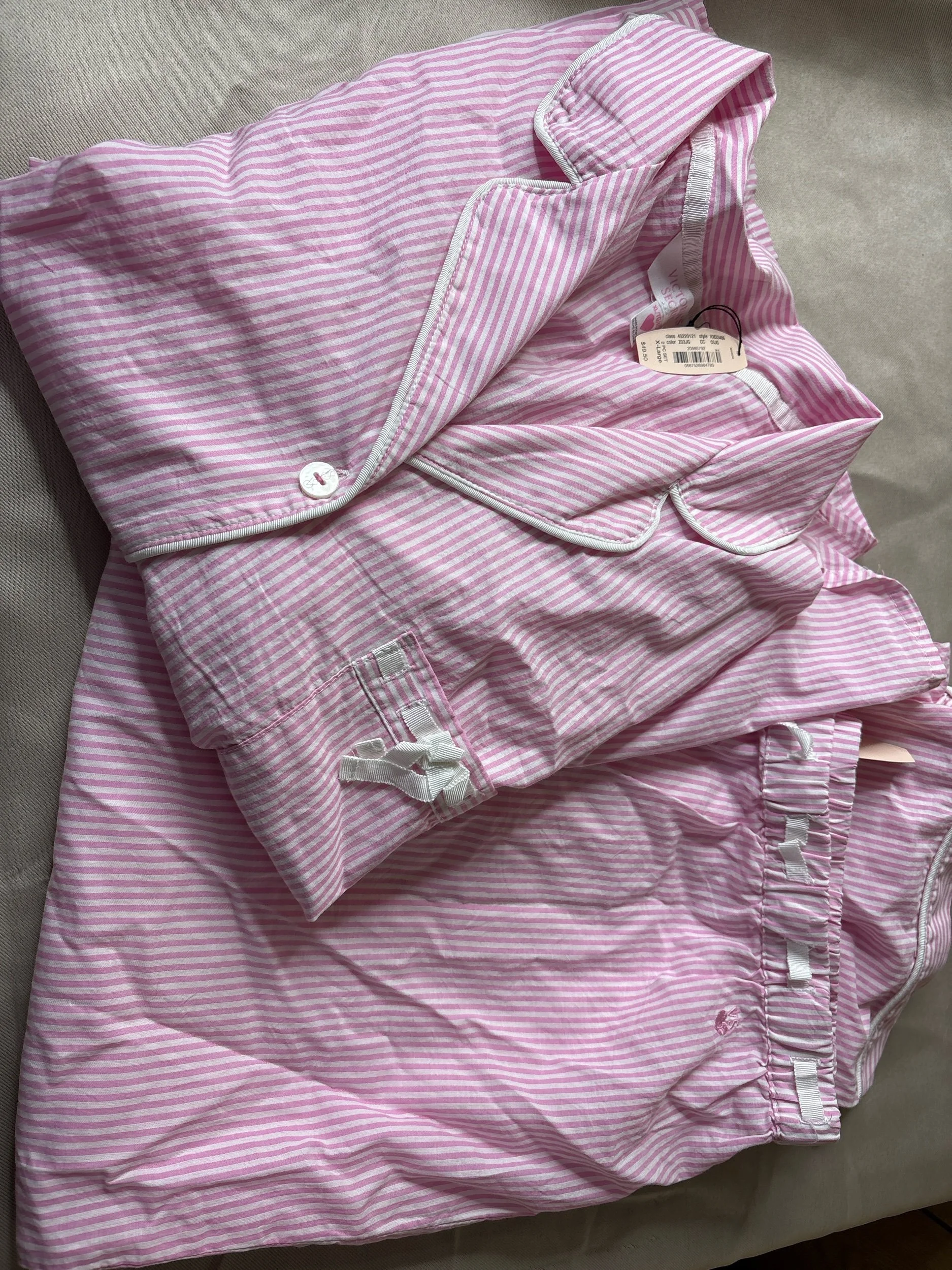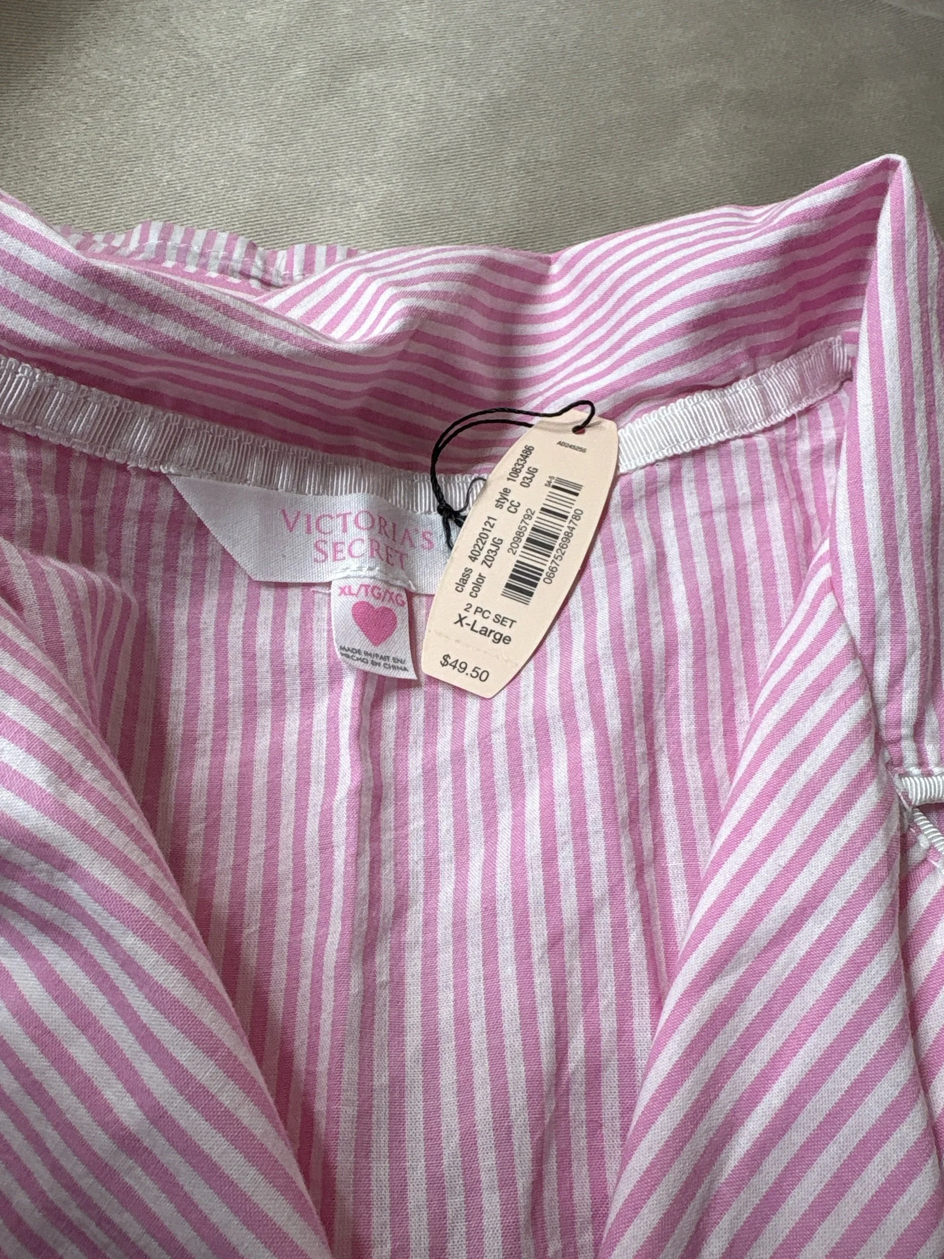 Online Store › New with tag two piece Victoria’s Secret ladies, extra large pajama pink and white stripes Image 1 of 5 Image 2 of 5 Image 3 of 5 Image 4 of 5 Image 5 of 5 New with tag two piece Victoria’s Secret ladies, extra large pajama pink and white stripes $22.00 Comfy pajama set in 100% cotton! Add To Cart Added! Comfy pajama set in 100% cotton!
