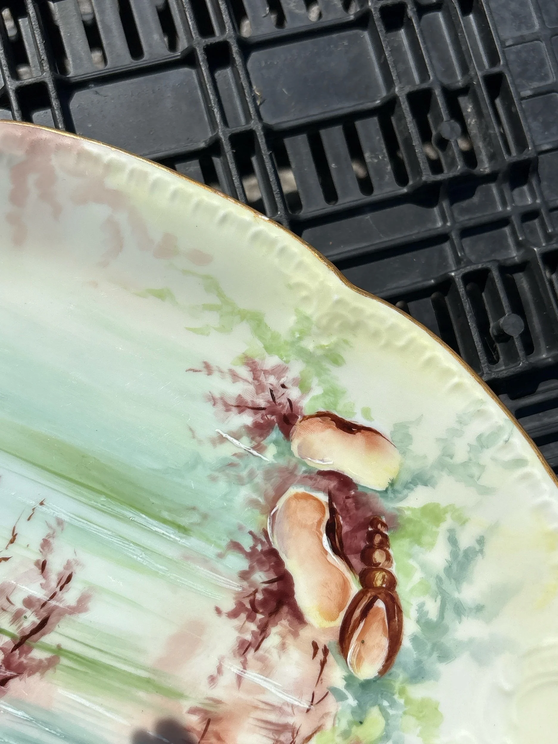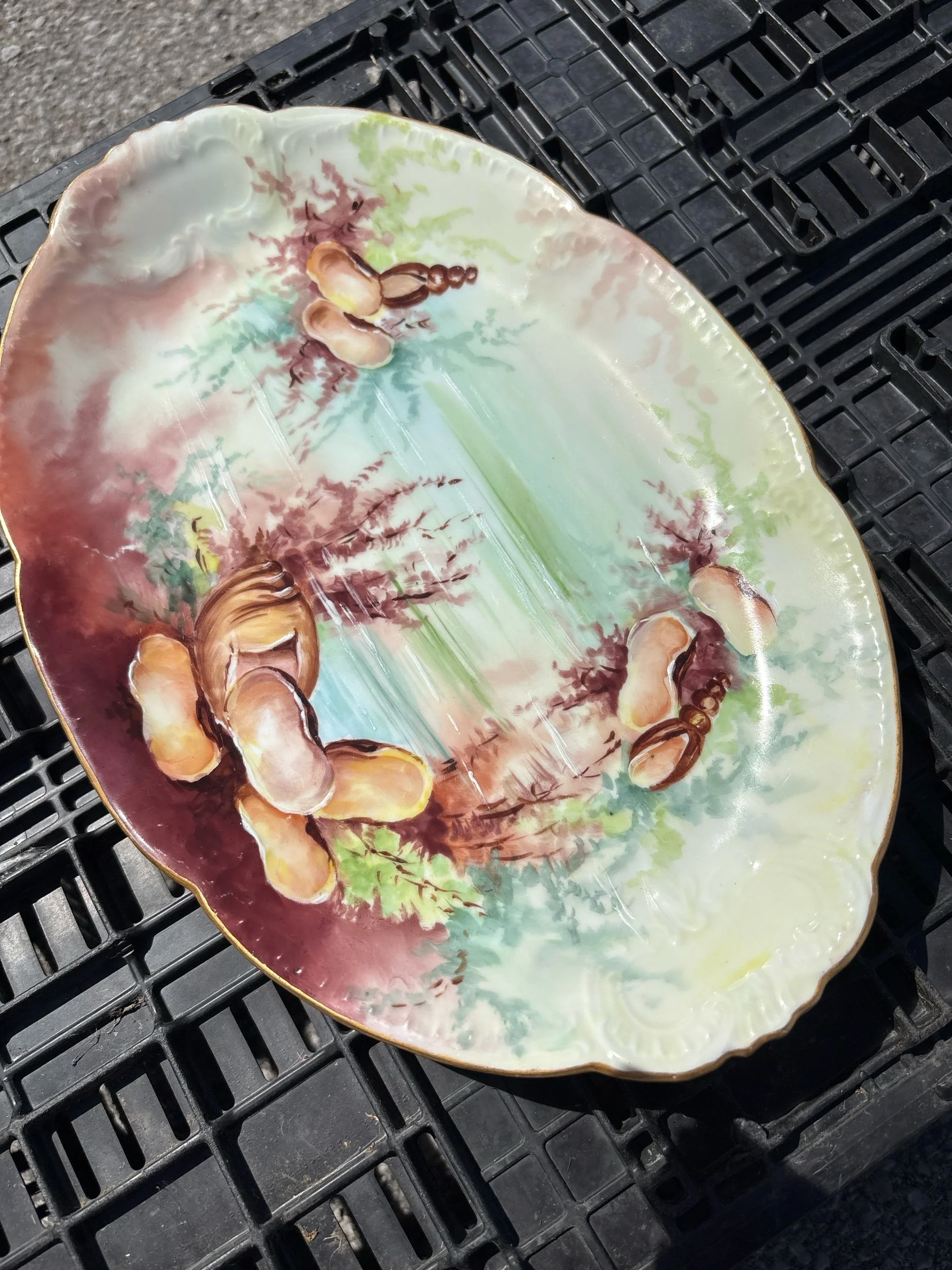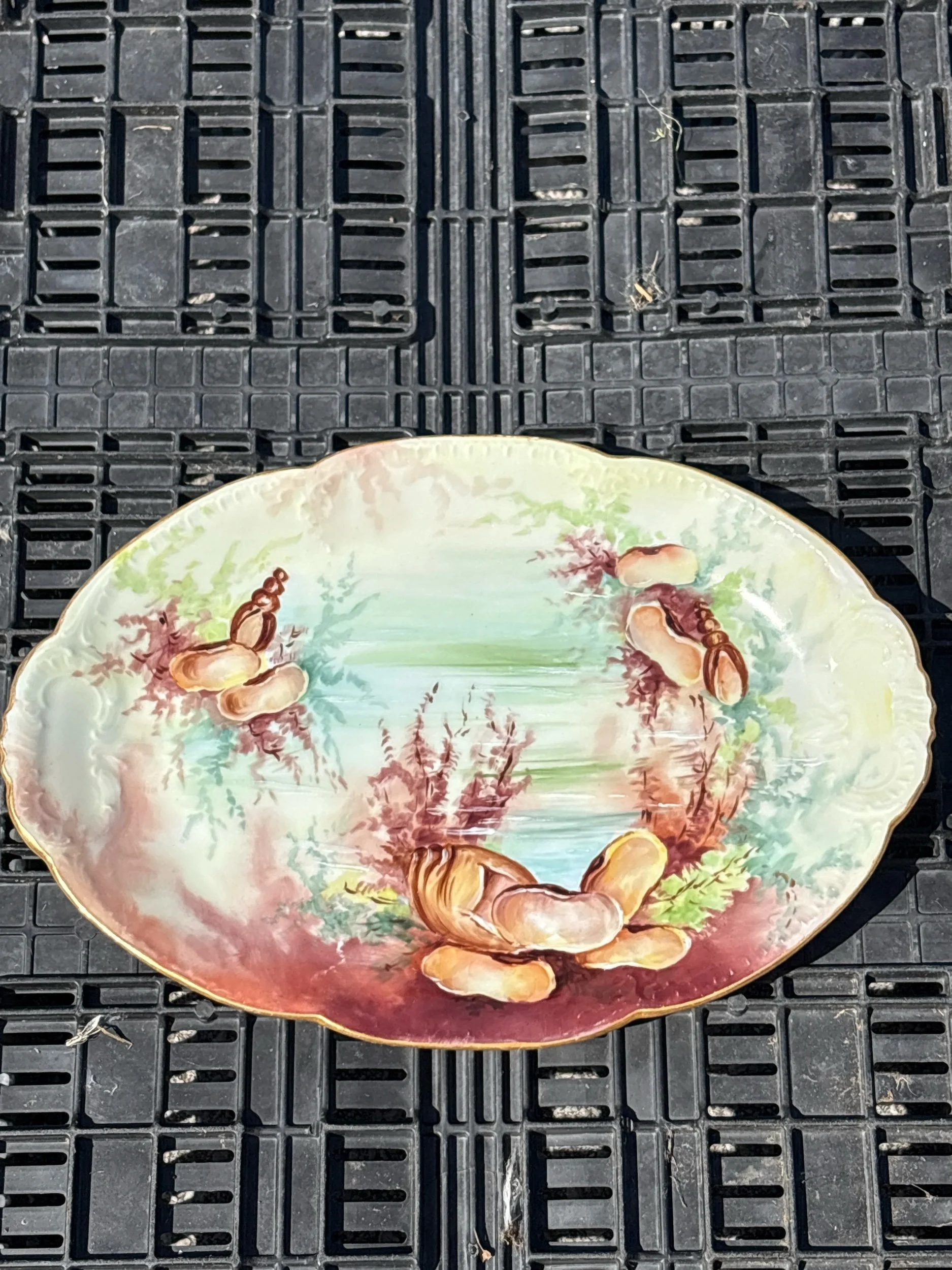 Online Store › Antique Platter w Sea Fauna 19th-20th Century French Limoges Image 1 of 4 Image 2 of 4 Image 3 of 4 Image 4 of 4 Antique Platter w Sea Fauna 19th-20th Century French Limoges $60.00 Beautiful platter with a gold trim. Very nice condition but the gold trim does show age in a few spots. Add To Cart Added! Beautiful platter with a gold trim. Very nice condition but the gold trim does show age in a few spots.