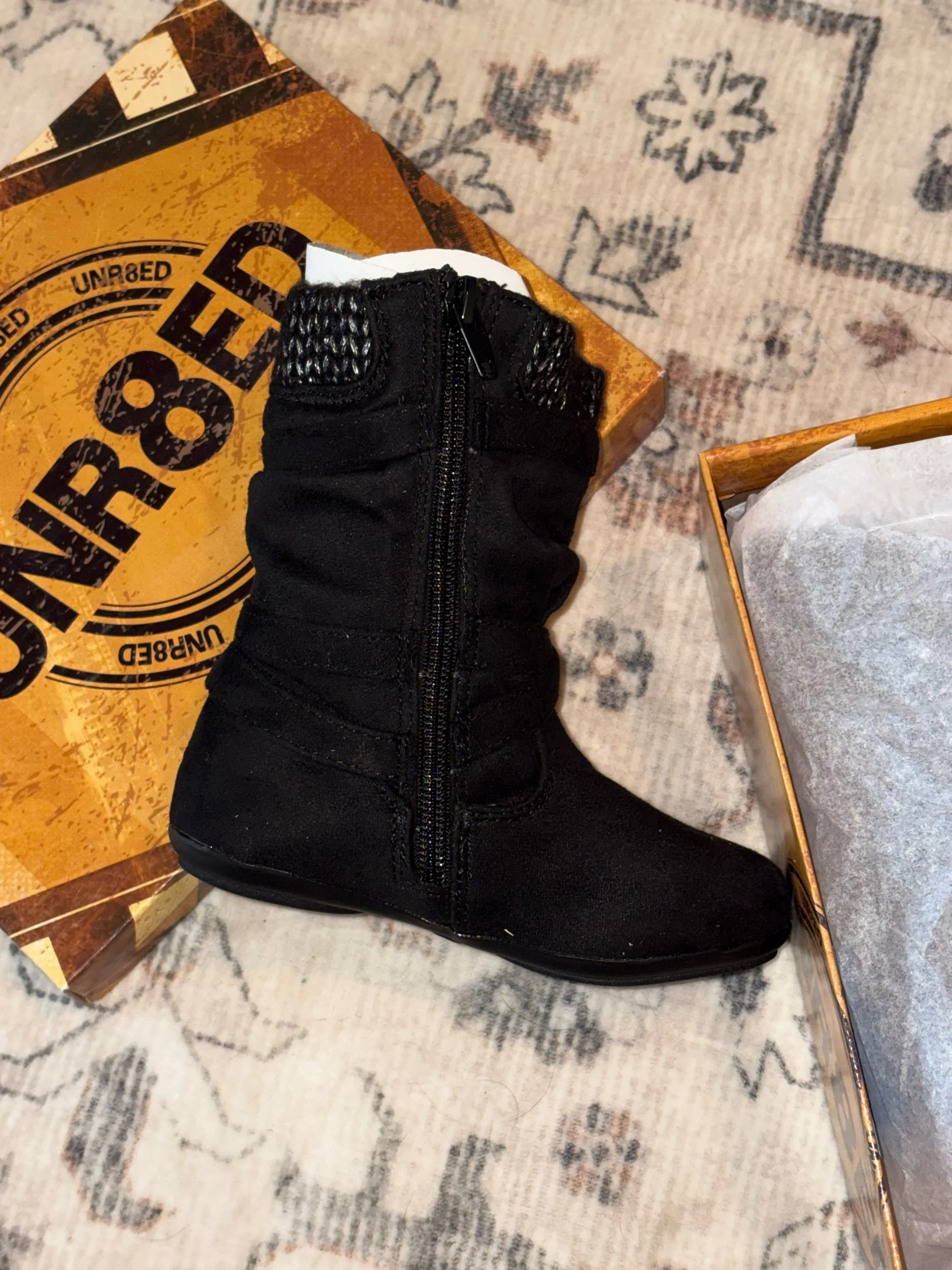 Online Store › Unr8ted Little Girl’s Black Zipper Boots New in Box Image 1 of 3 Image 2 of 3 Image 3 of 3 Unr8ted Little Girl’s Black Zipper Boots New in Box $14.00 Very cute boots in brand new condition! Size 8.5 M. Quantity: Add To Cart Added! Very cute boots in brand new condition! Size 8.5 M.